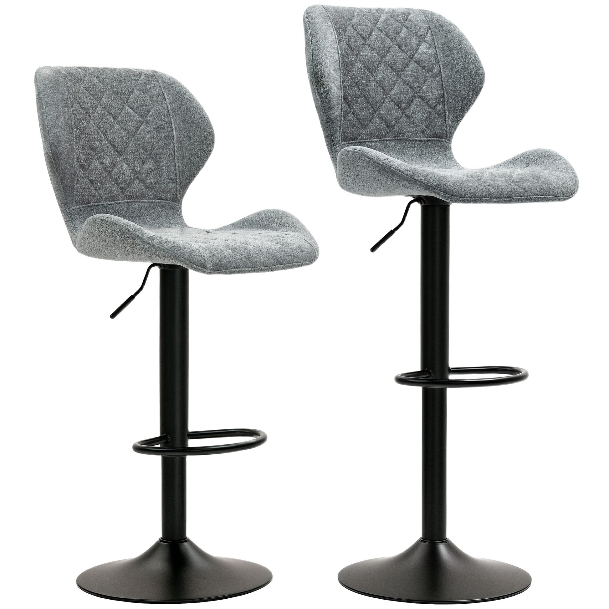 HOMCOM Barstühle im 2er-Set, Höhenverstellbare Küchenhocker mit Rückenlehne, Gaslift, Fußstütze, drehbar, Grau