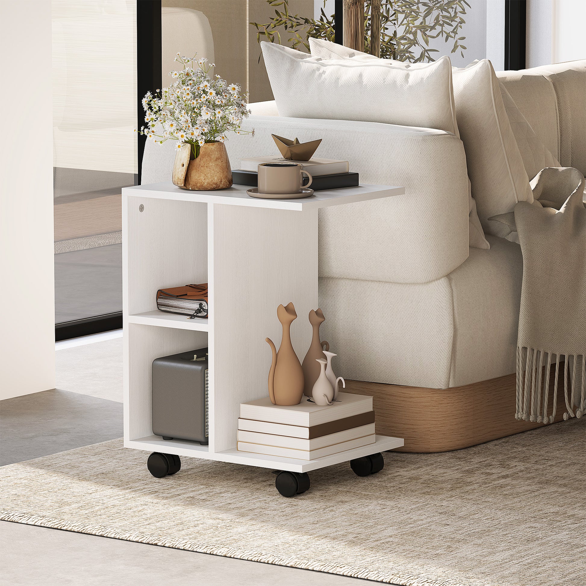 HOMCOM Beistelltisch in C-Form, Kaffeetisch, Couchtisch, Eckschreibtisch, mit Rollen, E1-Spanplatte, 45 x 35 x 58 cm, Weiß