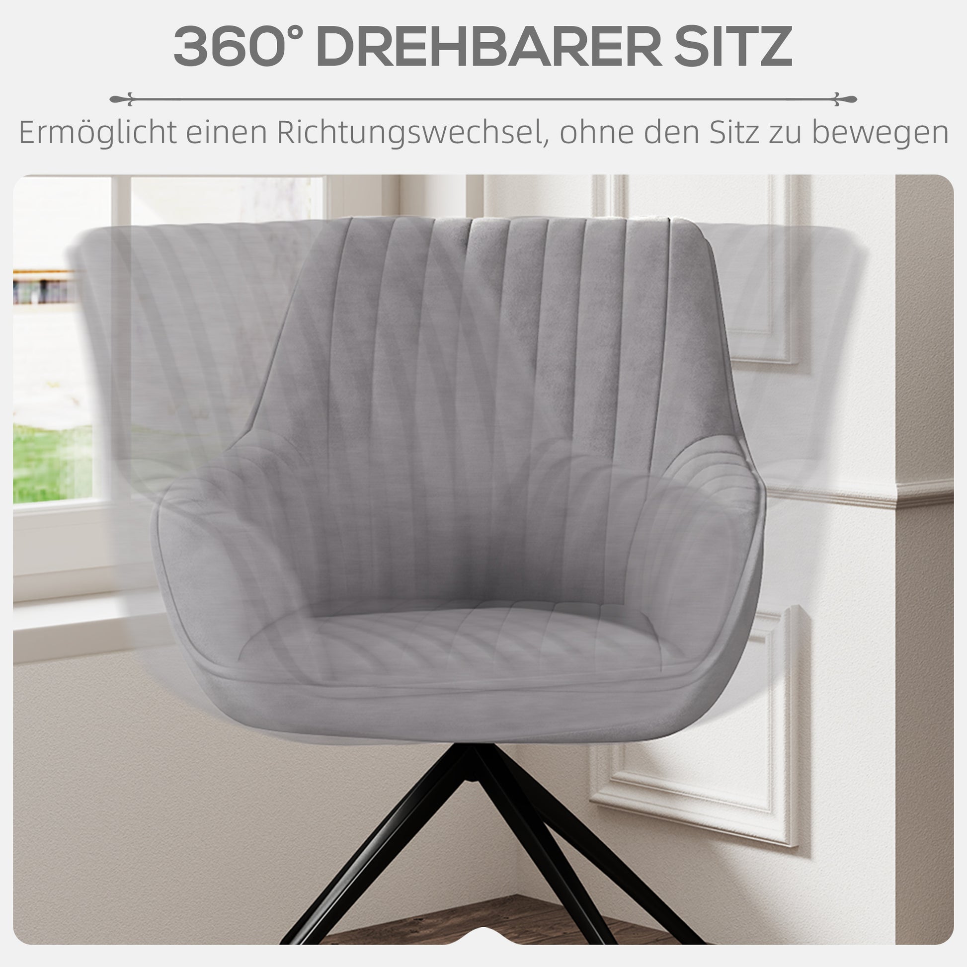 HOMCOM Drehbarer Armstuhl, Moderner Akzentsessel mit Metallbeinen für Wohnzimmer, Schlafzimmer, Büro, Grau