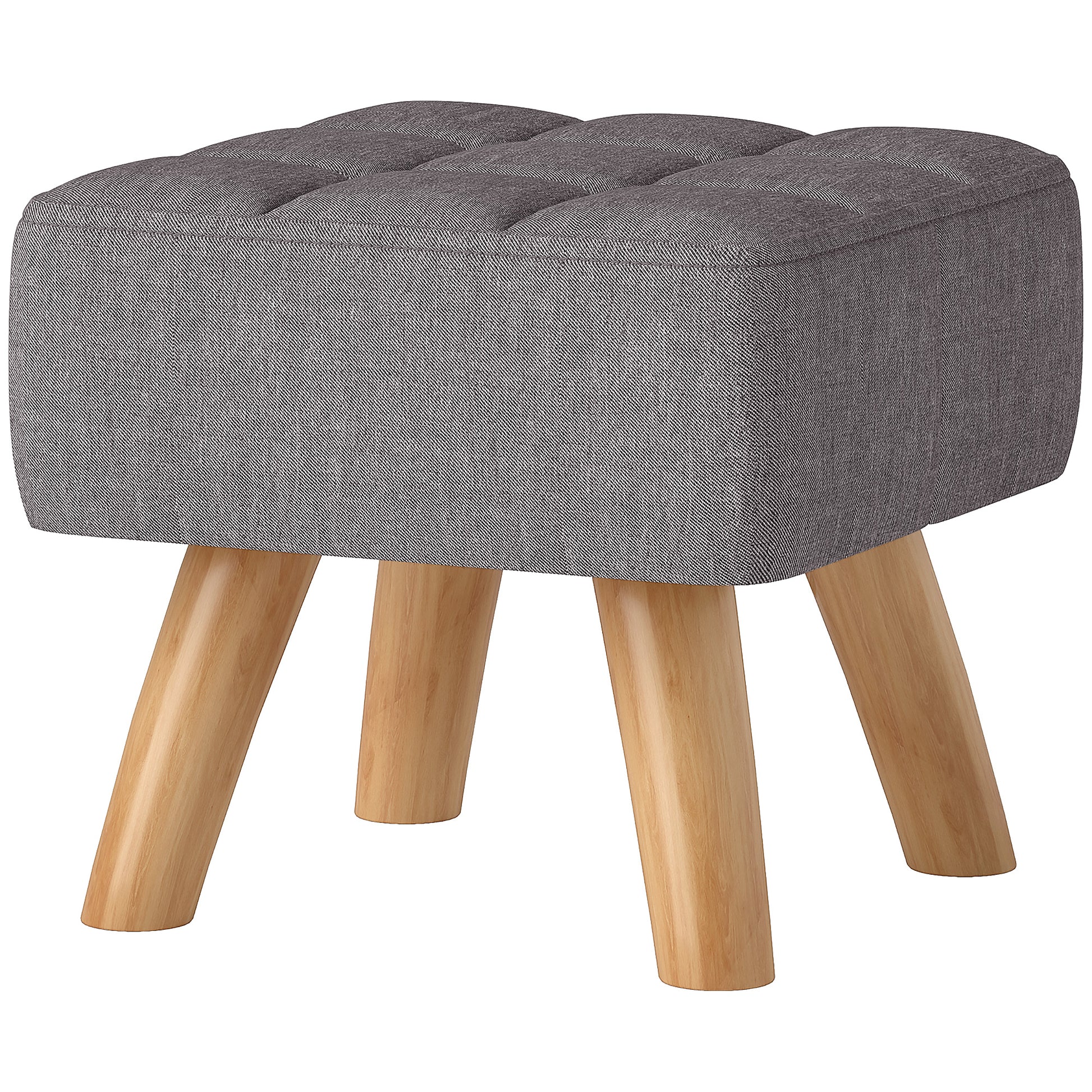 HOMCOM Fußhocker mit Polsterung, Leinenoptik, Holzbeine, bis 110 kg belastbar, Grau