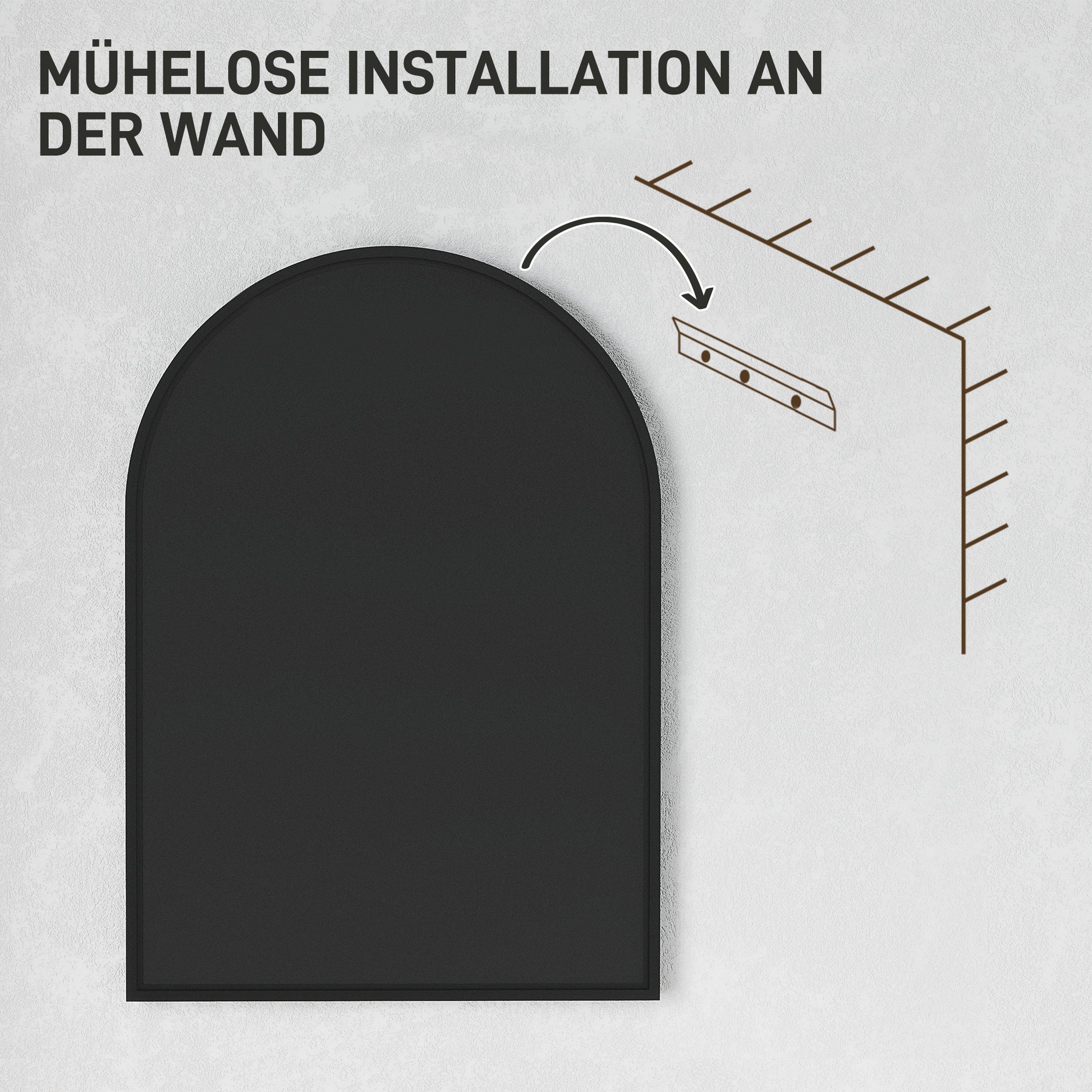 Entdecken Sie den eleganten Badezimmerspiegel von HOMCOM mit einem Bogendesign in den Maßen 50 x 70 cm, der jedem Raum eine elegante Note verleiht. Der 3 cm dicke Rahmen aus Aluminiumlegierung des Badspiegels ist rost- und wasserbeständig, ideal für feuchte Badezimmer. Zudem gewährleistet der Wandspiegel langanhaltenden Kanten-Schutz.