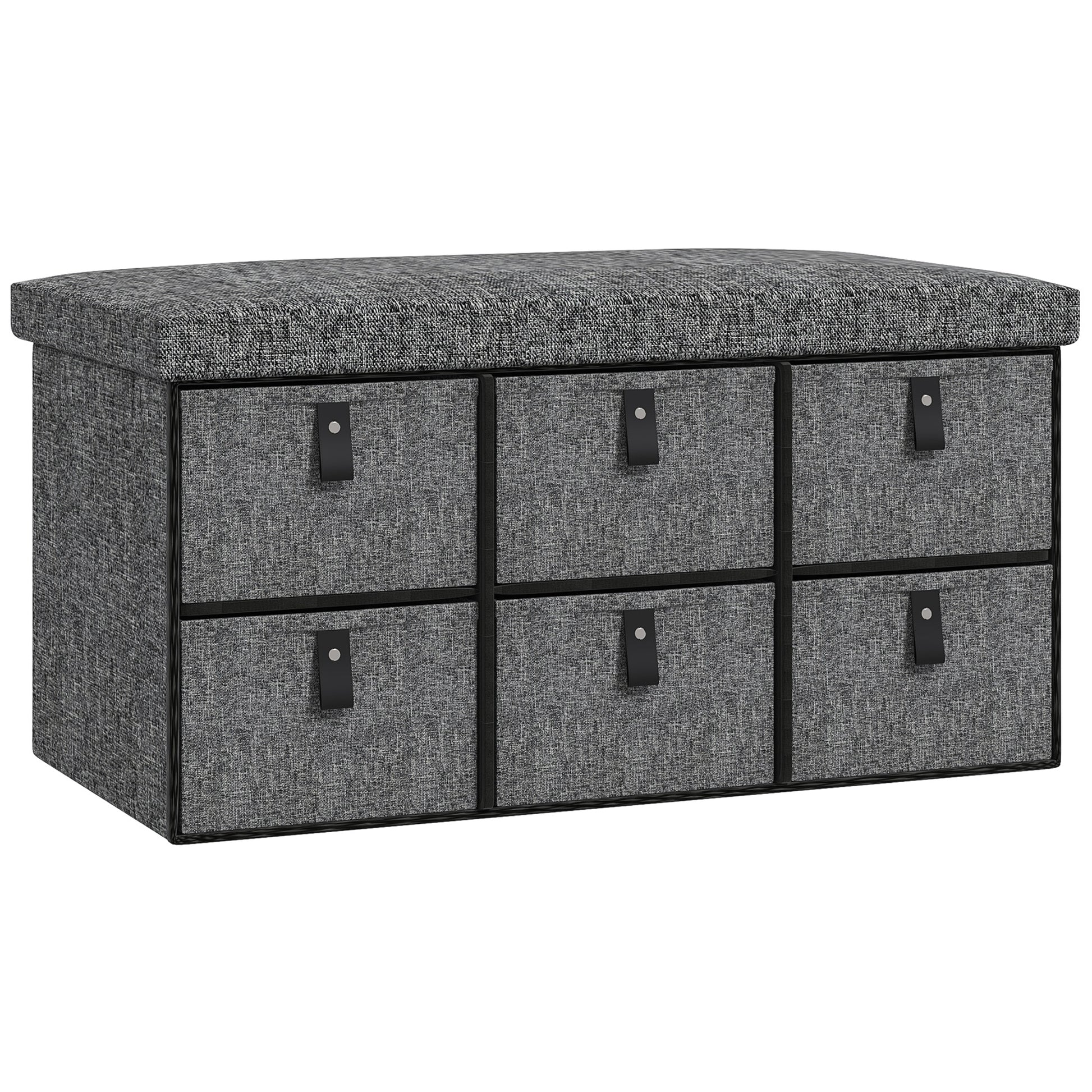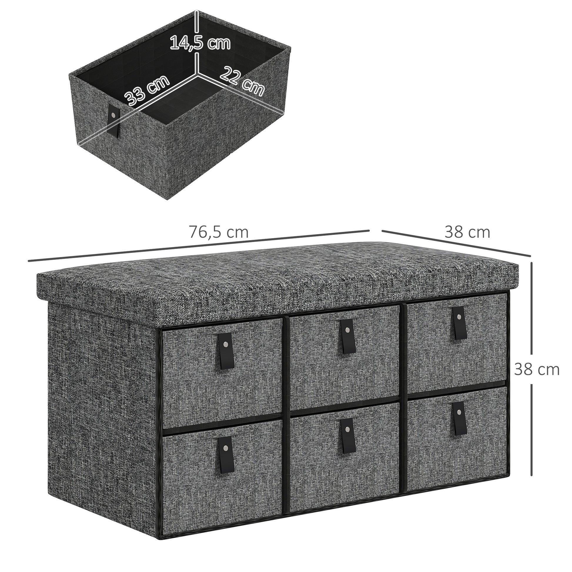 HOMCOM Gepolsterte Schuhbank, 6 Schuhfächer, MDF-Rahmen, Leinenoptik, Grau