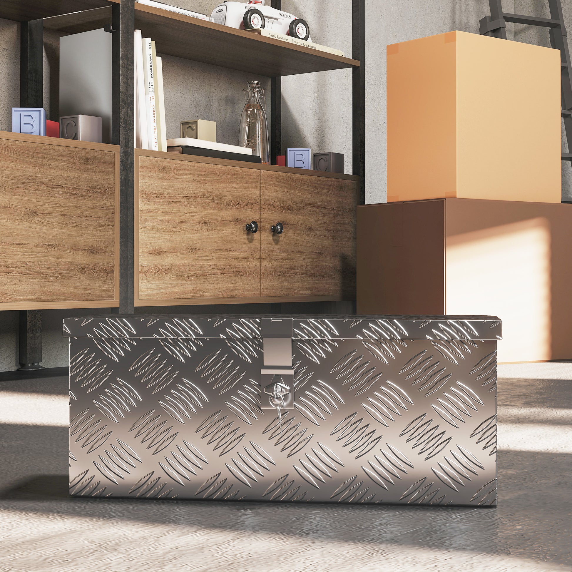 HOMCOM Gerätekasten Aufbewahrungskiste aus Aluminium mit Schloss und Schlüsseln 50 x 15,5 x 20,5 cm