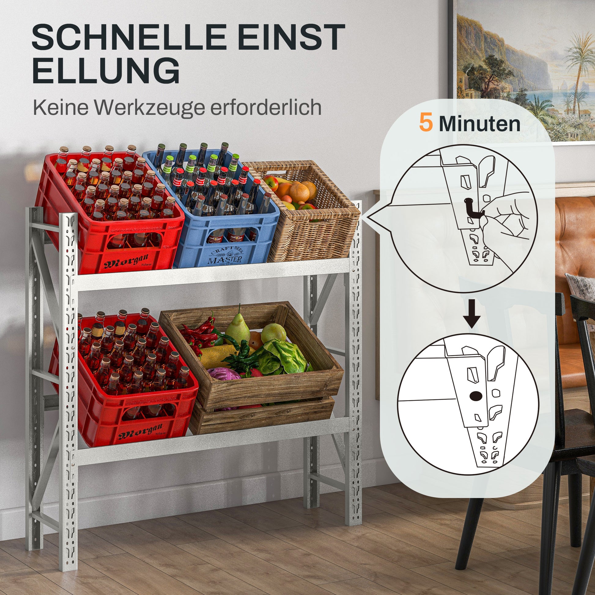 Entdecken Sie die einfache Art der Organisation mit dem HOMCOM Regal für Getränkekisten! Dieser zweistufige Kistenständer bietet Platz für bis zu 6 Getränkekisten und sorgt dafür, dass Ihre Getränke stets griffbereit sind, ganz ohne Bücken. Doch das ist nicht alles: Versetzen Sie das Regal, um Obst, Gemüse oder sogar Wäschekörbe zu verstauen. Eine clevere und vielseitige Lösung, um Ihren Raum sauber und ordentlich zu halten!