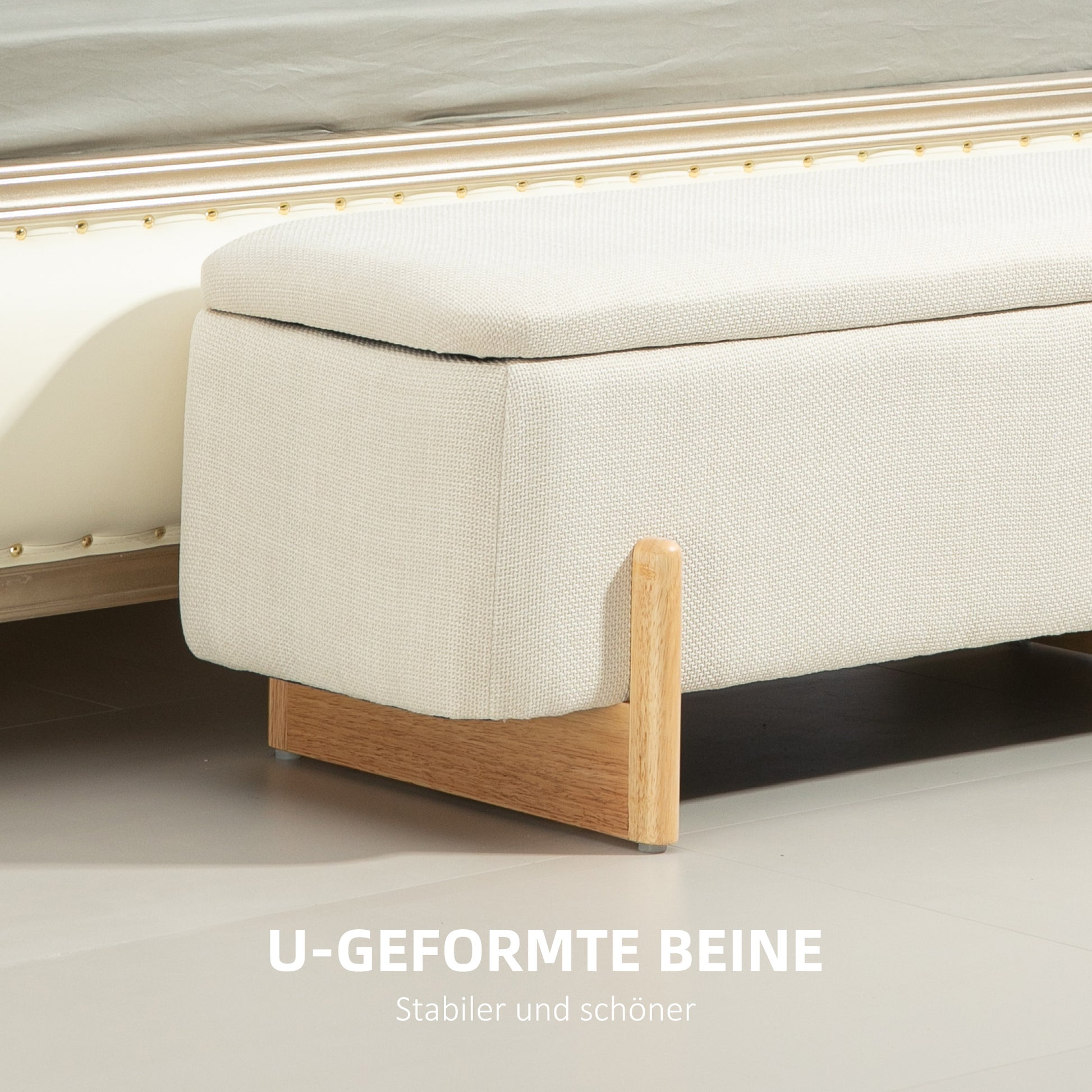 HOMCOM Hocker mit Stauraum, Sitzbank mit Schaumstoffpolsterung, Leinenimitat, 111 x 44 x 44,5 cm, Cremeweiß