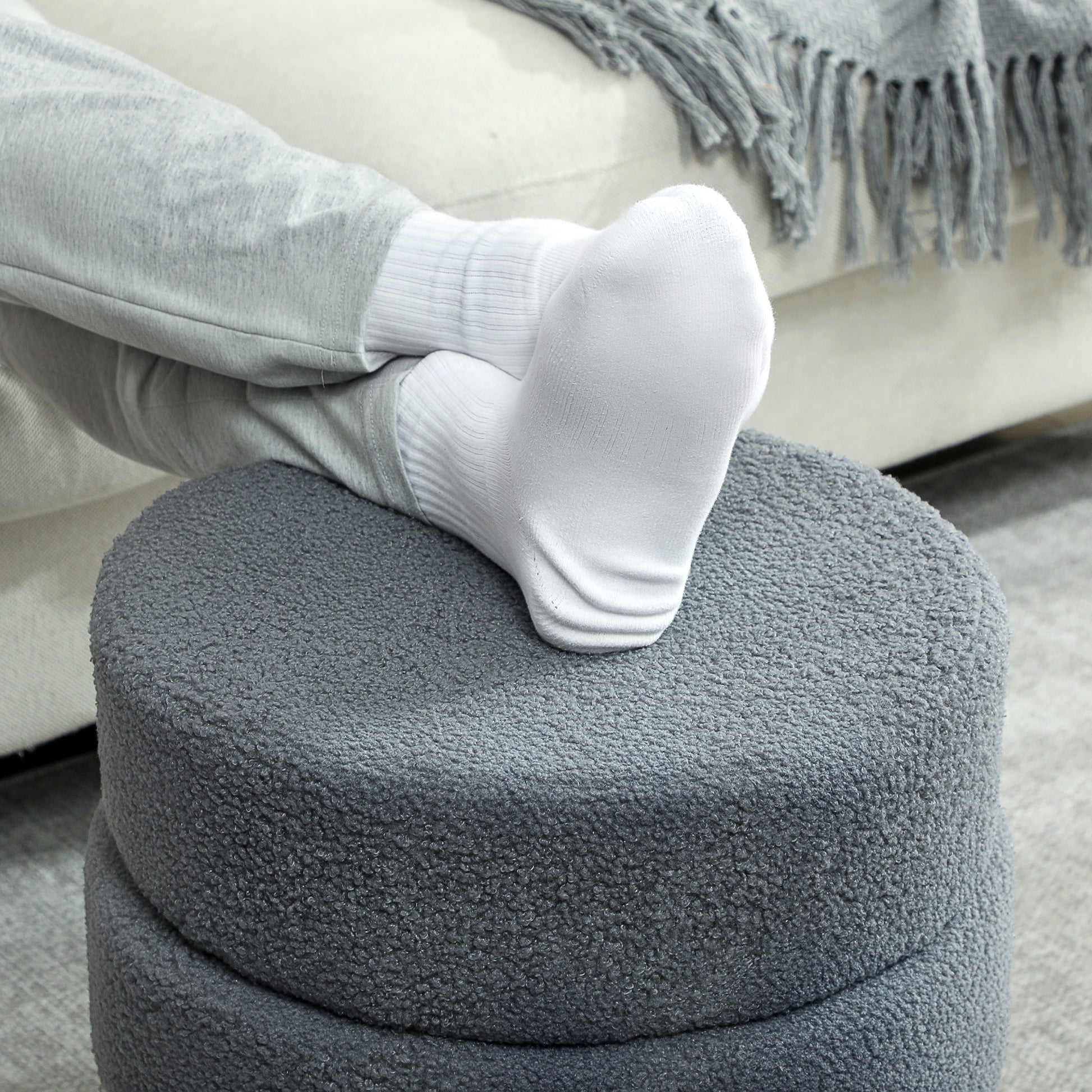 HOMCOM Hocker, rund, Teddyfleece, bis 120kg, Φ40x45H cm, Dunkelgrau