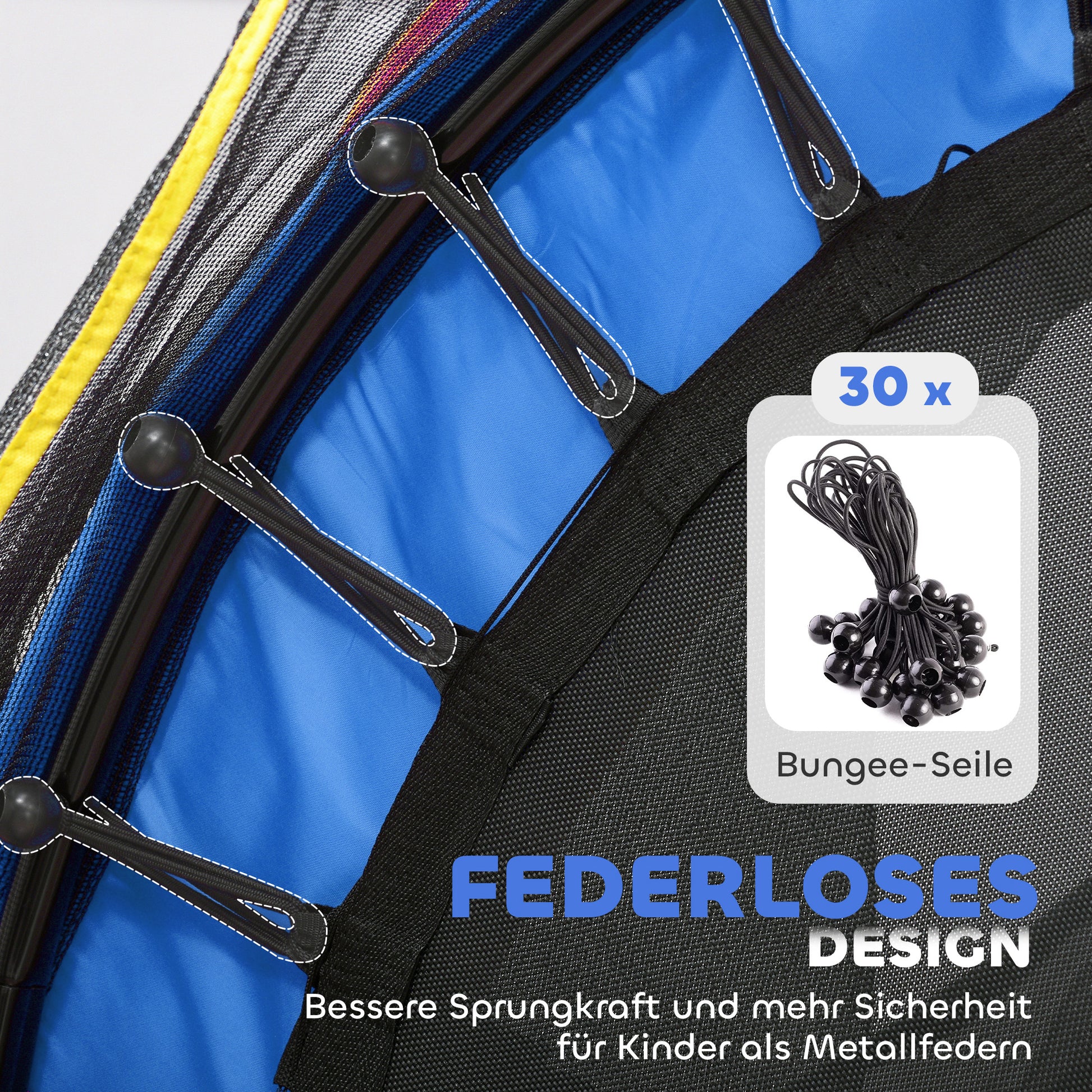 - ✔ Hochelastische Gummifederung der Kindertrampolin ist sicherer für Kinder als Stahlfedern