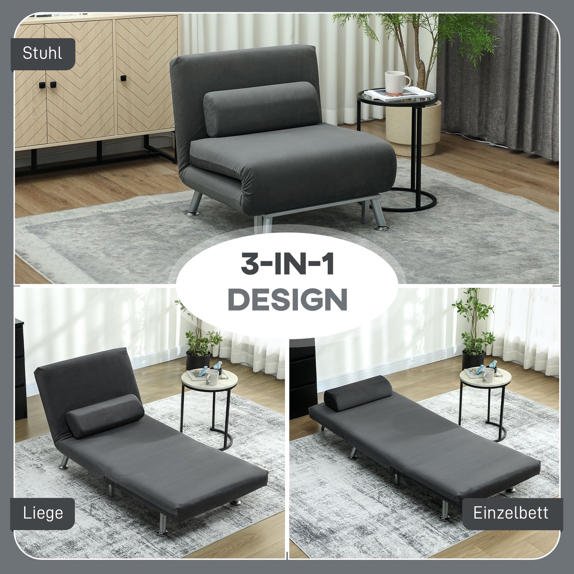 HOMCOM Klappsessel mit Bettfunktion, klappbarer Relaxsessel in Samtoptik, Verstellbare Rückenlehne, 75 x 70 x 75 cm, Dunkelgrau