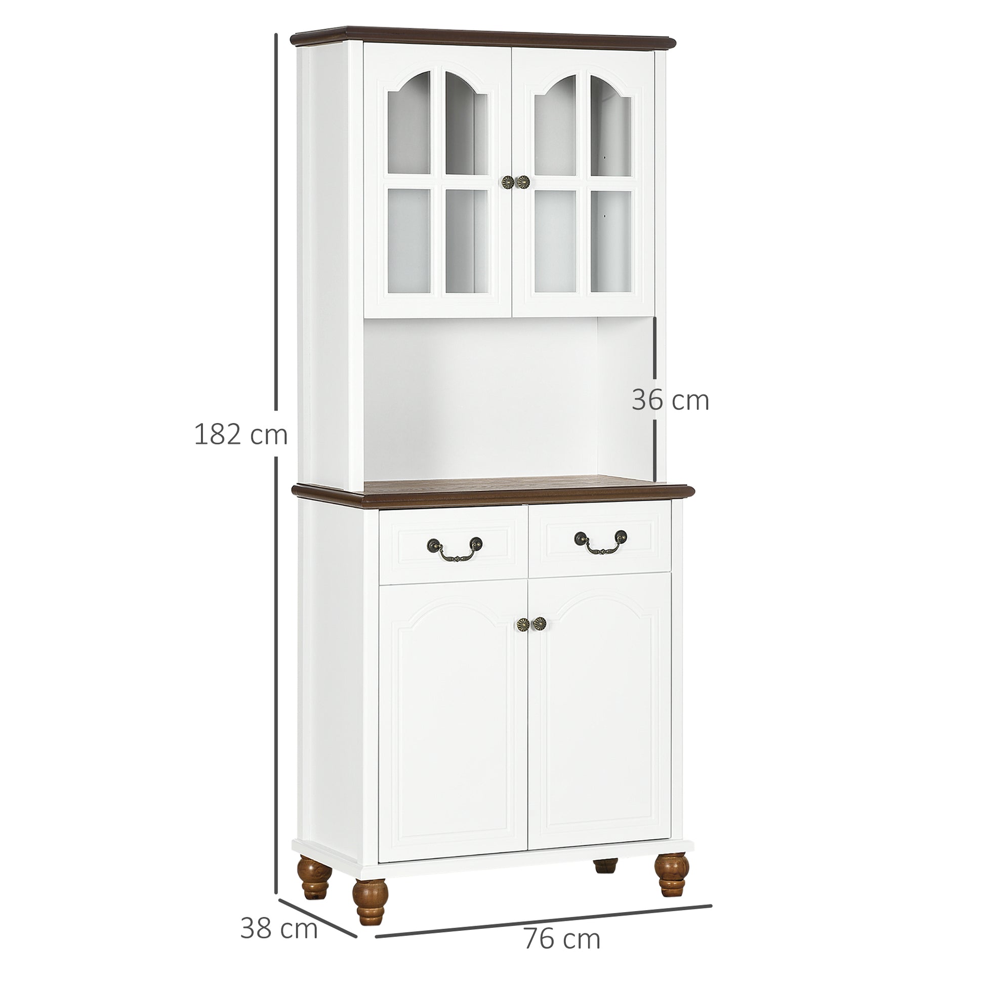 HOMCOM Küchenschrank, Buffet, 2 Schubladen, 2 Schrankfächer, klassisches Design, Weiß+Dunkelbraun, 76 x 38 x 182 cm