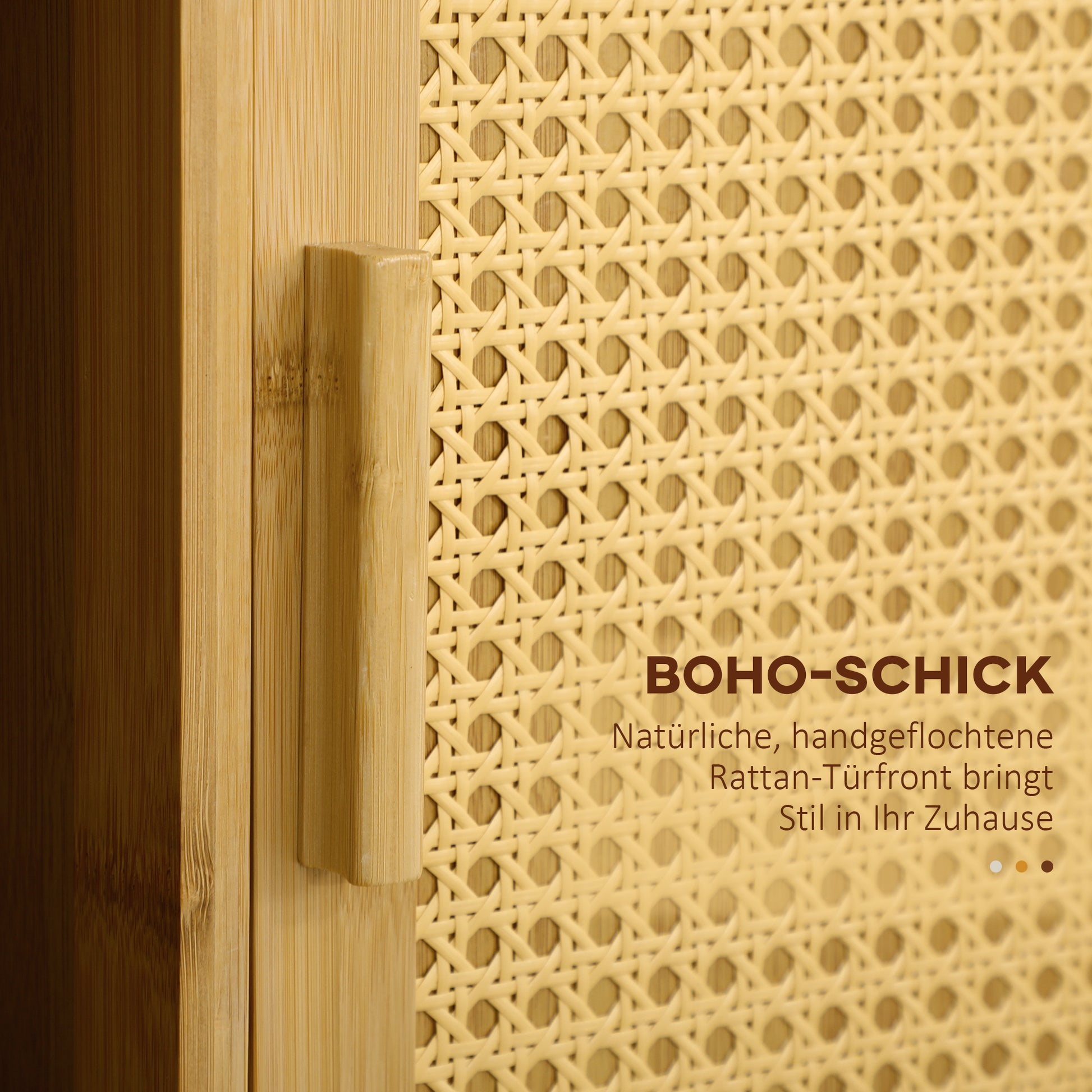 Maximieren Sie den Platz in Ihrer Küche und schaffen Sie Ordnung mit diesem HOMCOM Küchenwagen aus Bambus. Mit seiner Rattantür und den platzsparenden Aufbewahrungsmöglichkeiten, einem Schrank, zwei Ablagefächern und zwei Schubladen ist er ein vielseitiges und stilvolles Küchenmöbel. Diese kleine Kücheninsel lässt sich auf feststellbaren Rollen leicht durch den Raum bewegen und bringt den Komfort genau dorthin, wo er am meisten gebraucht wird. Werten Sie Ihre Küche noch heute mit diesem Aufbewahrungswagen auf.
