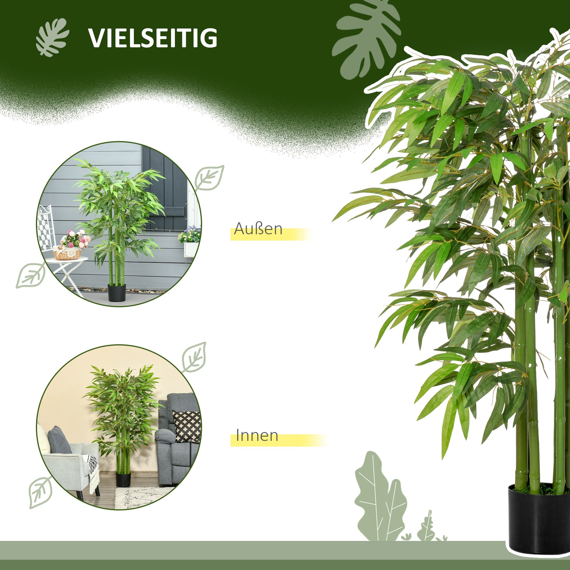 HOMCOM Künstliche Pflanze, Bambus aus Kunststoff im Topf, 780 Blätter, realistischer Look, kaum Pflegeaufwand, 140 cm, Grün