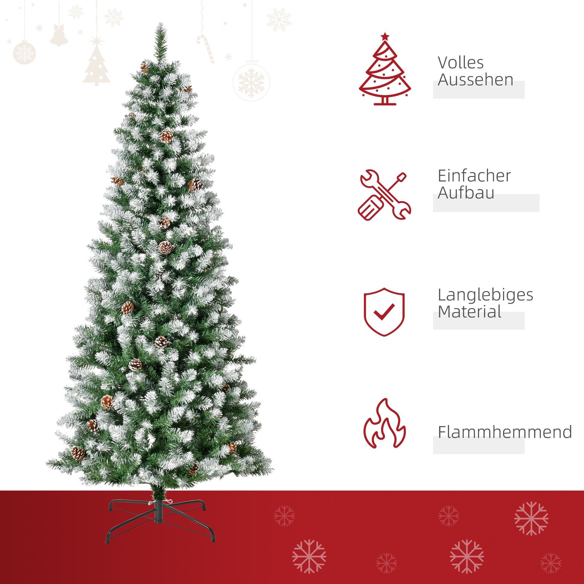 HOMCOM Künstlicher Weihnachtsbaum, 630 Zweige, 37 Zapfen, verschneite Spitzen, feuerfest, 180 cm