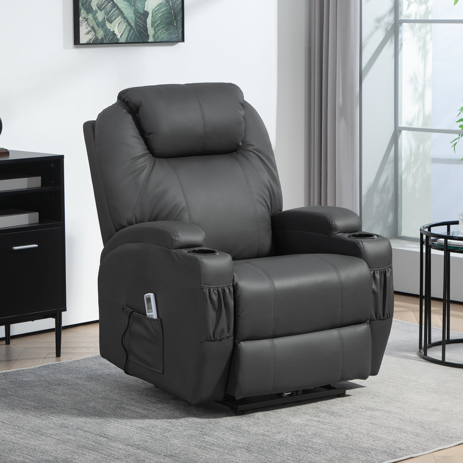 HOMCOM Massagesessel, elektrisch verstellbar, 8 Vibrationspunkte, Becherhalter, Kunstleder, Dunkelgrau