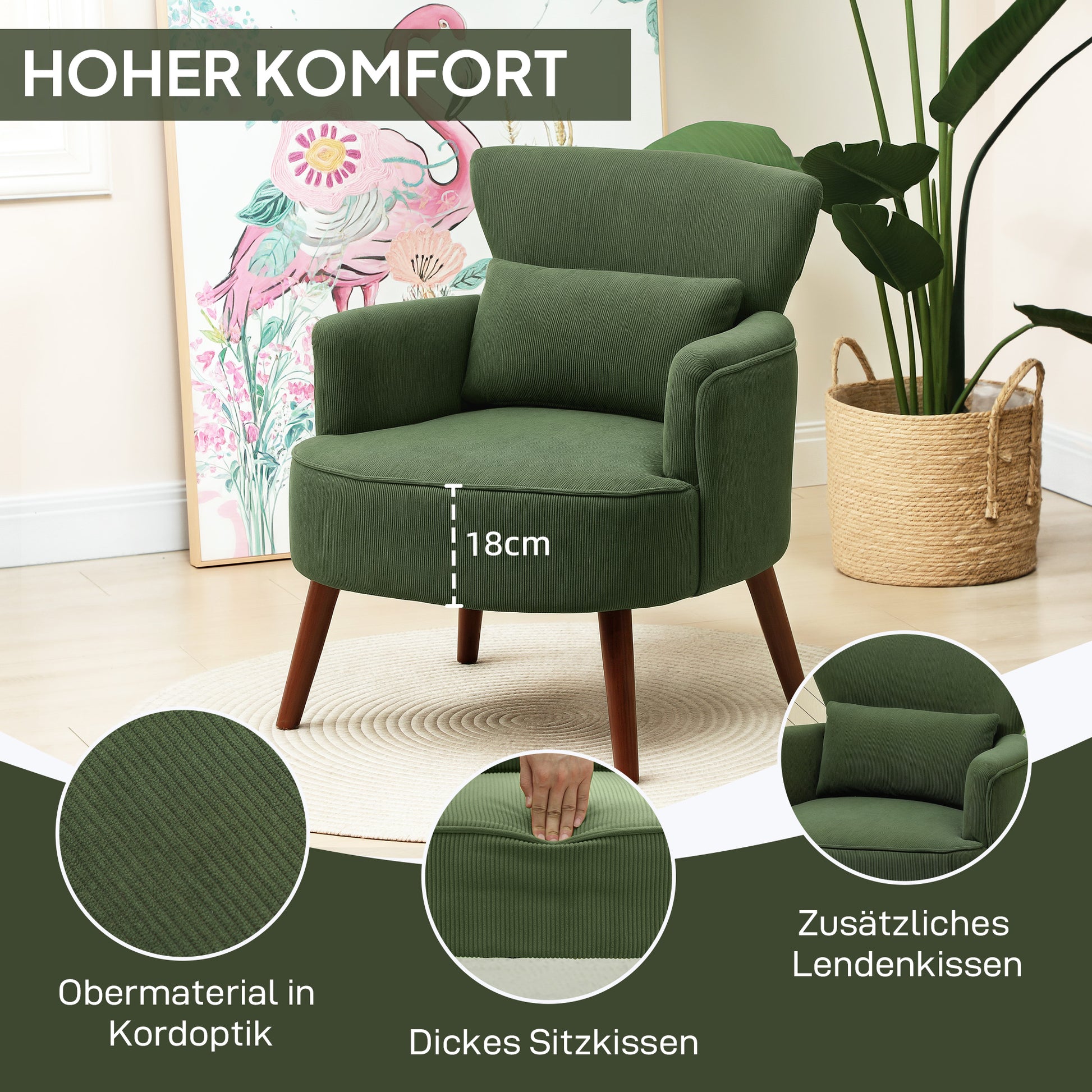 HOMCOM Moderner Armlehnstuhl, Gepolsterter Akzentstuhl mit Lendenkissen, Grün