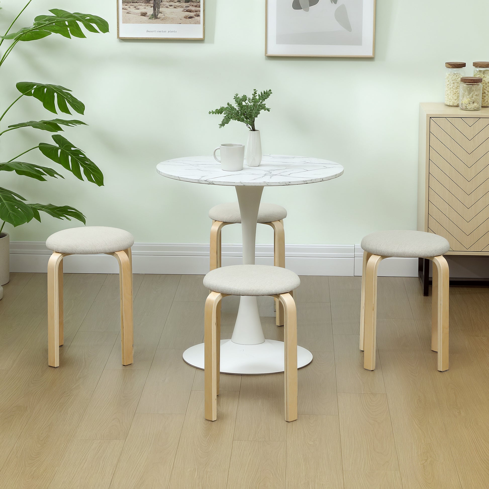 HOMCOM Polsterhocker im 4er-Set, stapelbar, lackierte Oberfläche, Holzbeine, Cremeweiß