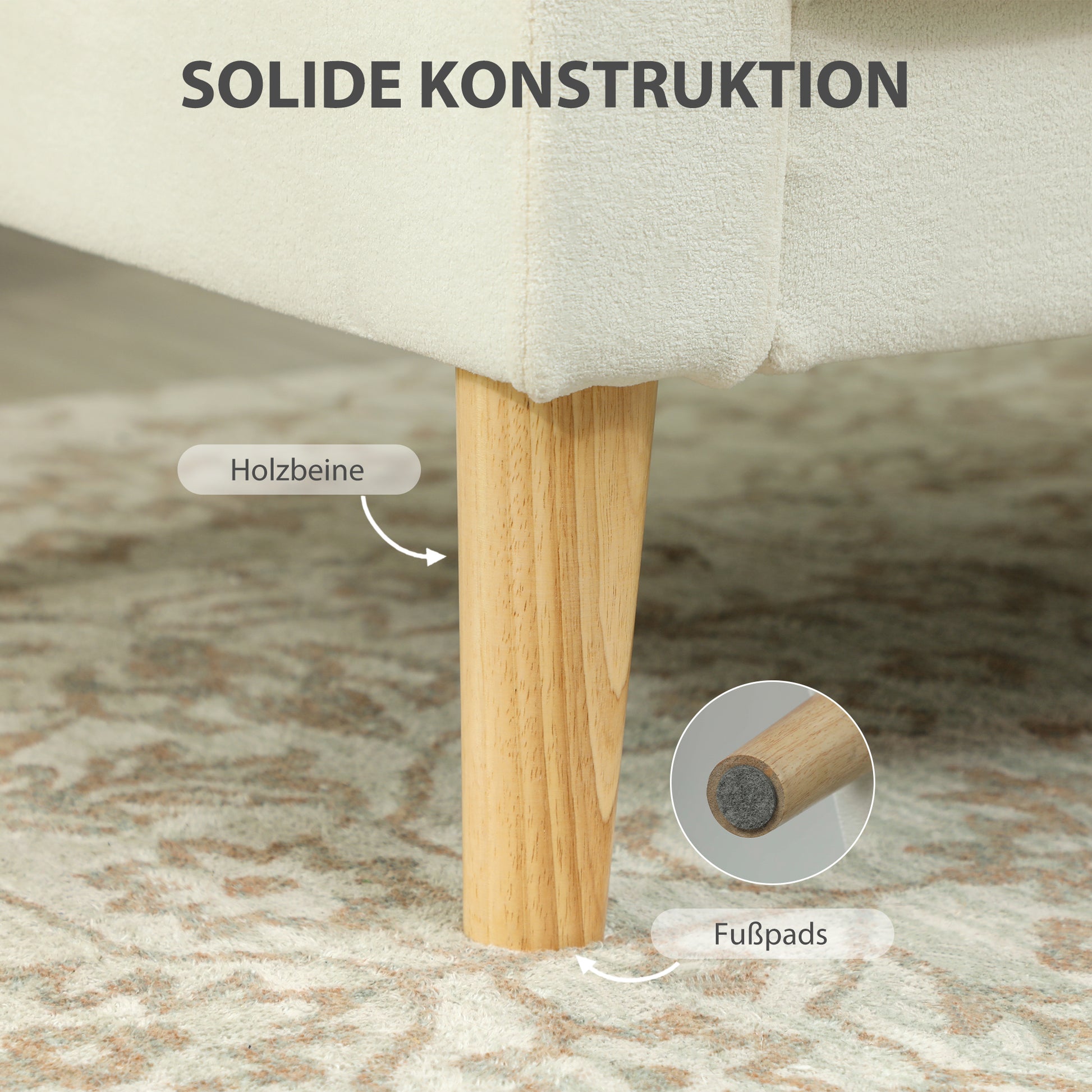 HOMCOM Polstersessel mit Armlehnen, neigbare Rückenlehne, Kautschukholzbeine, Cremeweiß