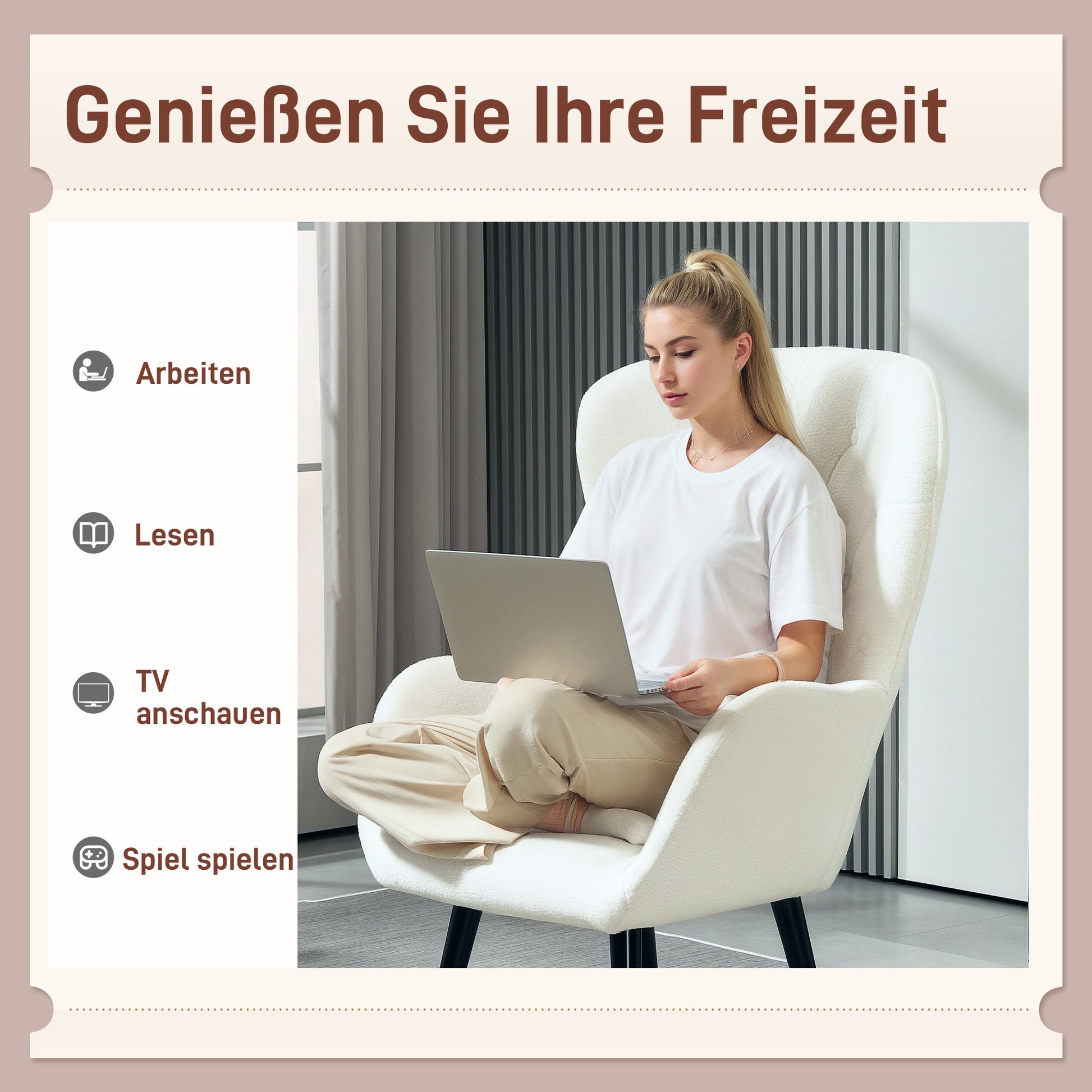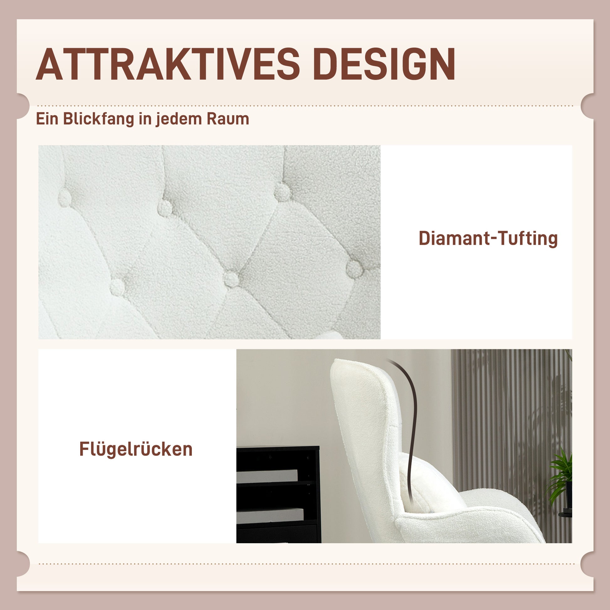 HOMCOM Polstersessel mit Rautensteppung, Bezug aus Teddystoff, mit Dekokissen, 88 x 75 x 106 cm, Weiß