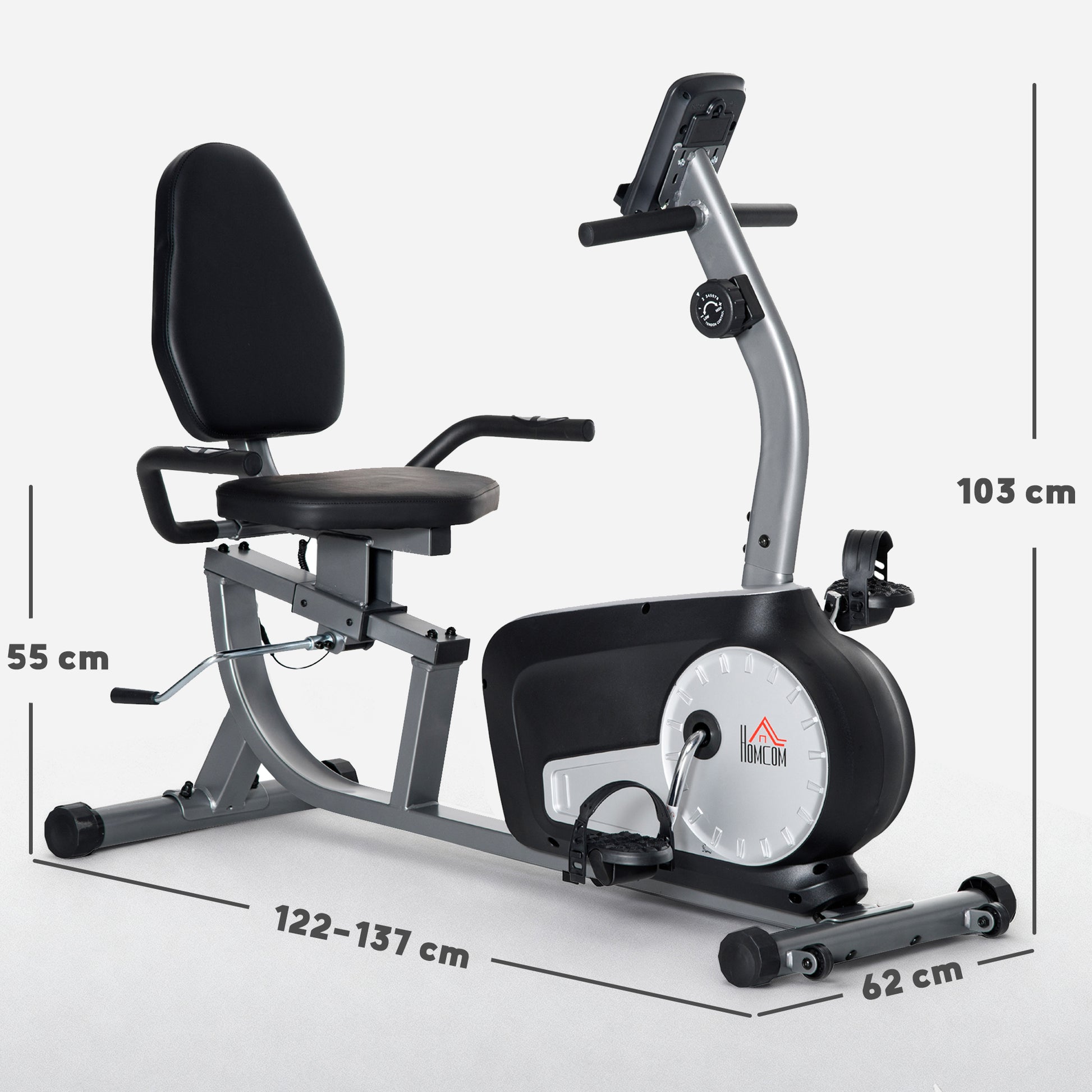 HOMCOM Radtrainer mit 8-stufigem Widerstand 122-137 x 62 x 103cm Stahl Grau+Schwarz+Silber