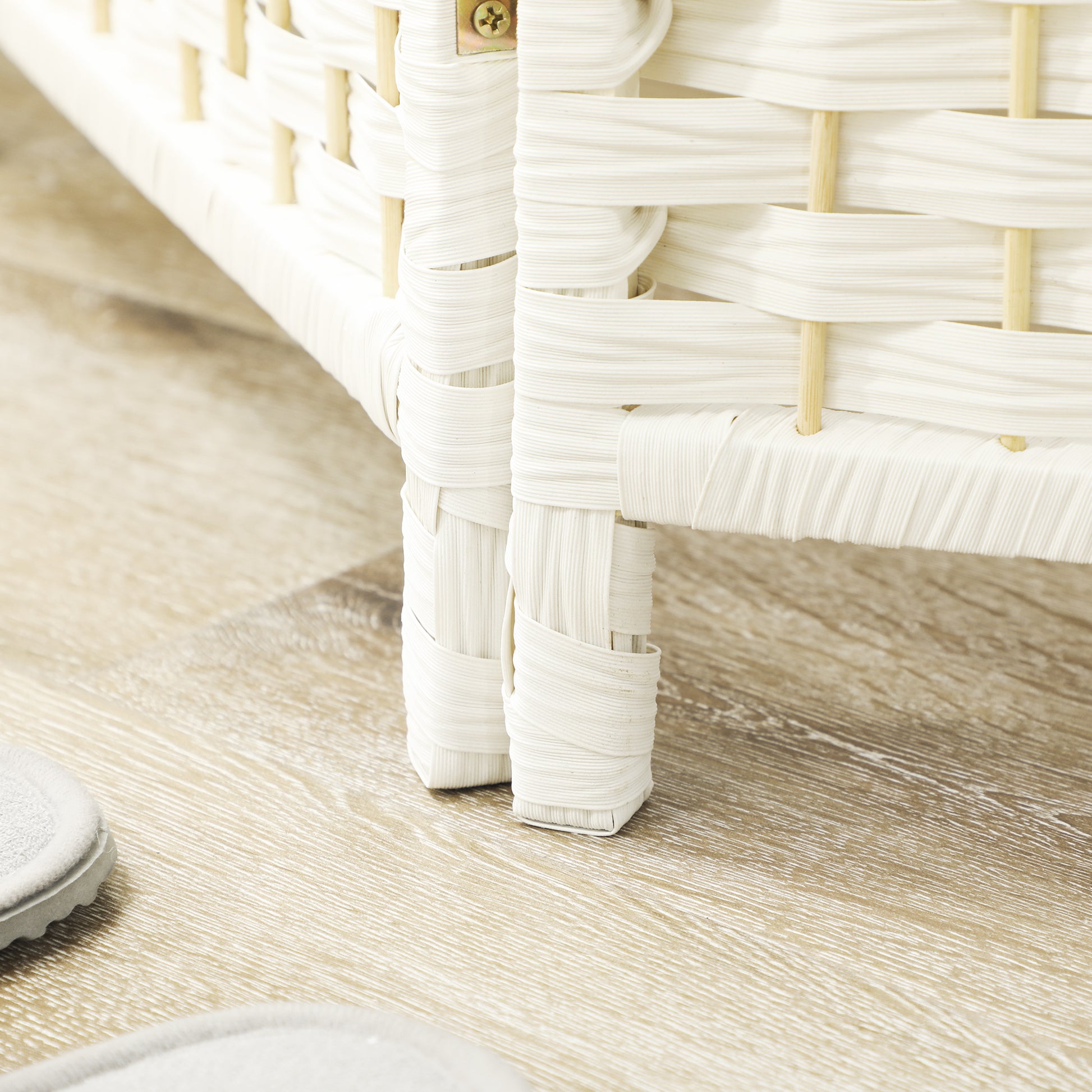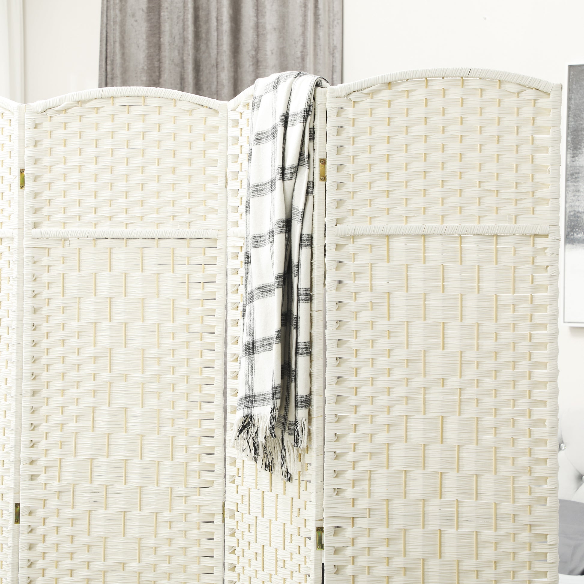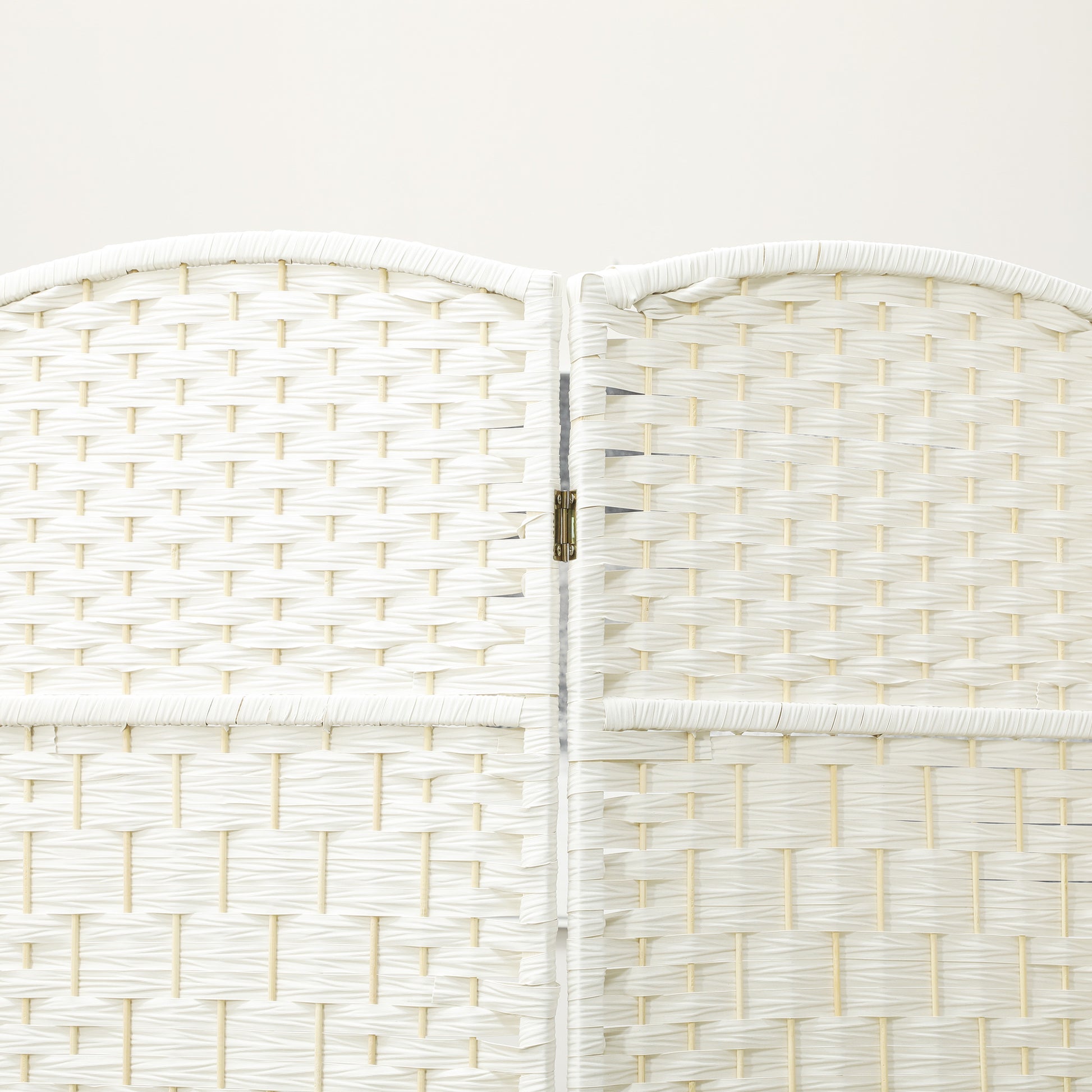 HOMCOM Raumteiler, 4-teilig faltbare Trennwand, Geflechtmuster, Kiefernholz, Weiß