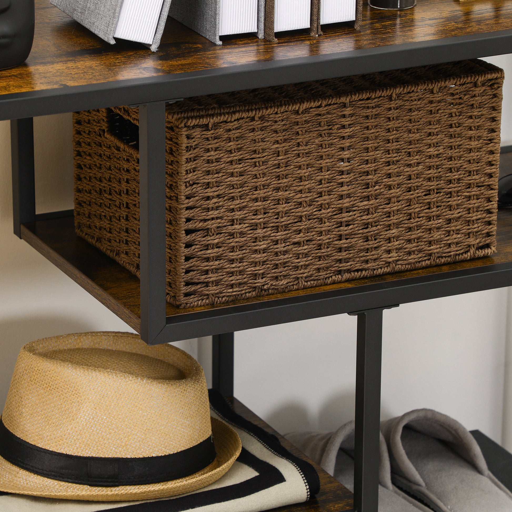 HOMCOM Regal, Konsolentisch, Industrial Design, 4 Böden, Stahlrahmen, 99,6 x 33,6 x 74 cm