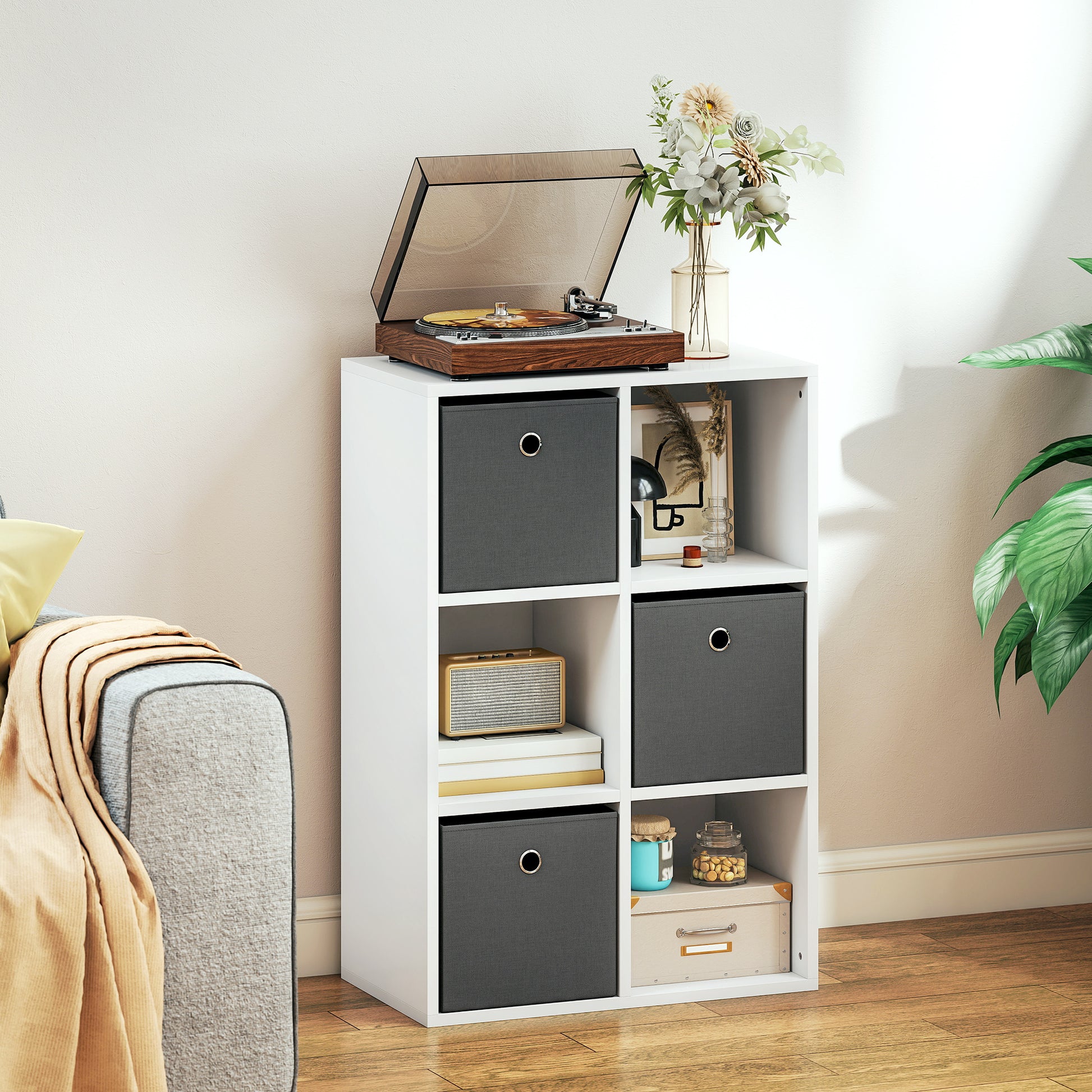 HOMCOM Regal mit 6 Fächern und 3 Stoffschubladen, Aufbewahrungsregal, vielseitig, Grau
