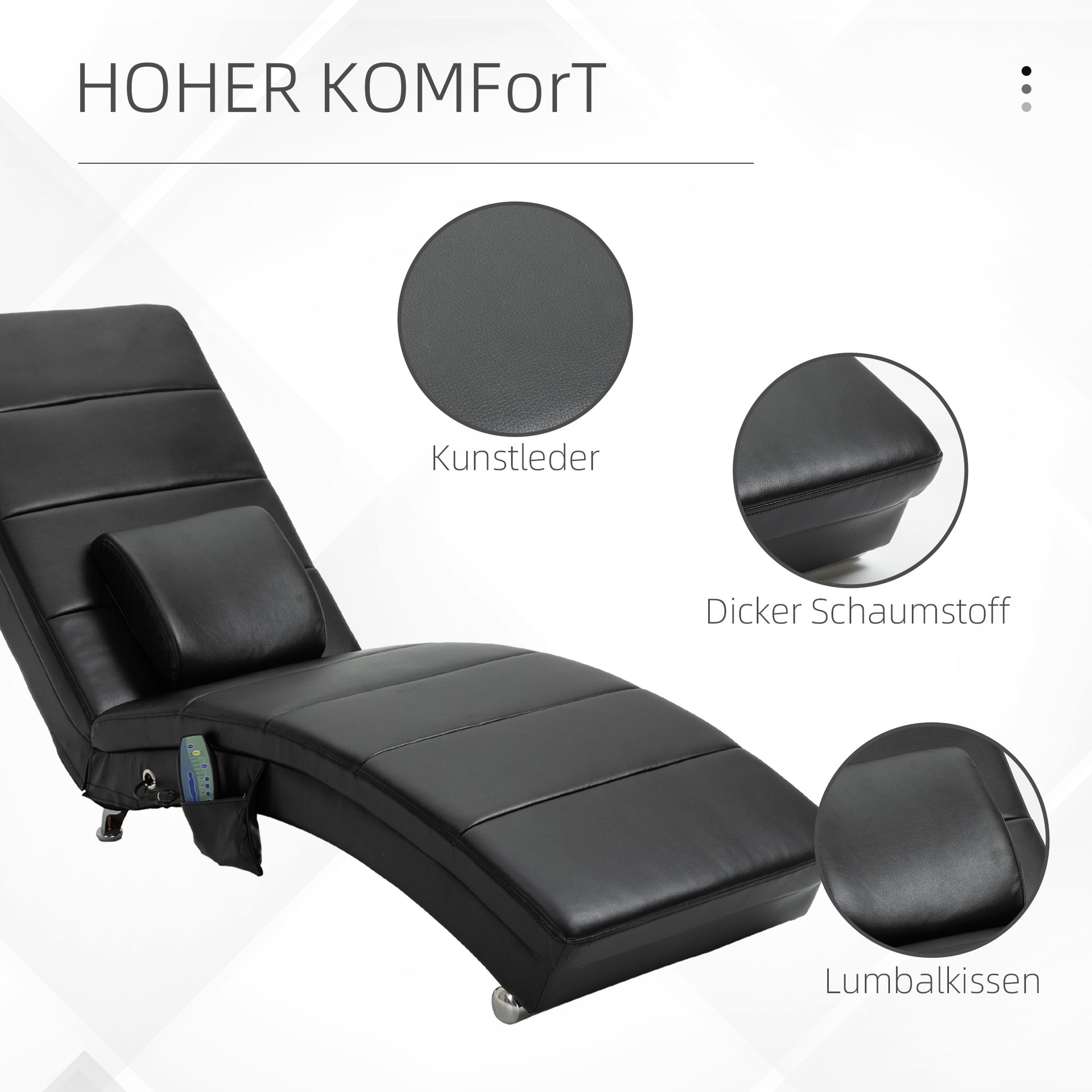 Tauchen Sie ein in den Komfort dieses luxuriösen Relaxsessels. Unser Relaxsessel sieht nicht nur gut aus, sondern lädt auch zum Entspannen und Ausruhen ein. Acht Vibrationspunkte massieren ihren ganzen Körper und sorgen für wahre Wohlfühlmomente. Dieser Relaxsessel überzeugt nicht nur durch sein luxuriöses Design aus schwarzem Kunstleder, sondern auch durch seine wohltuende Massagefunktion.