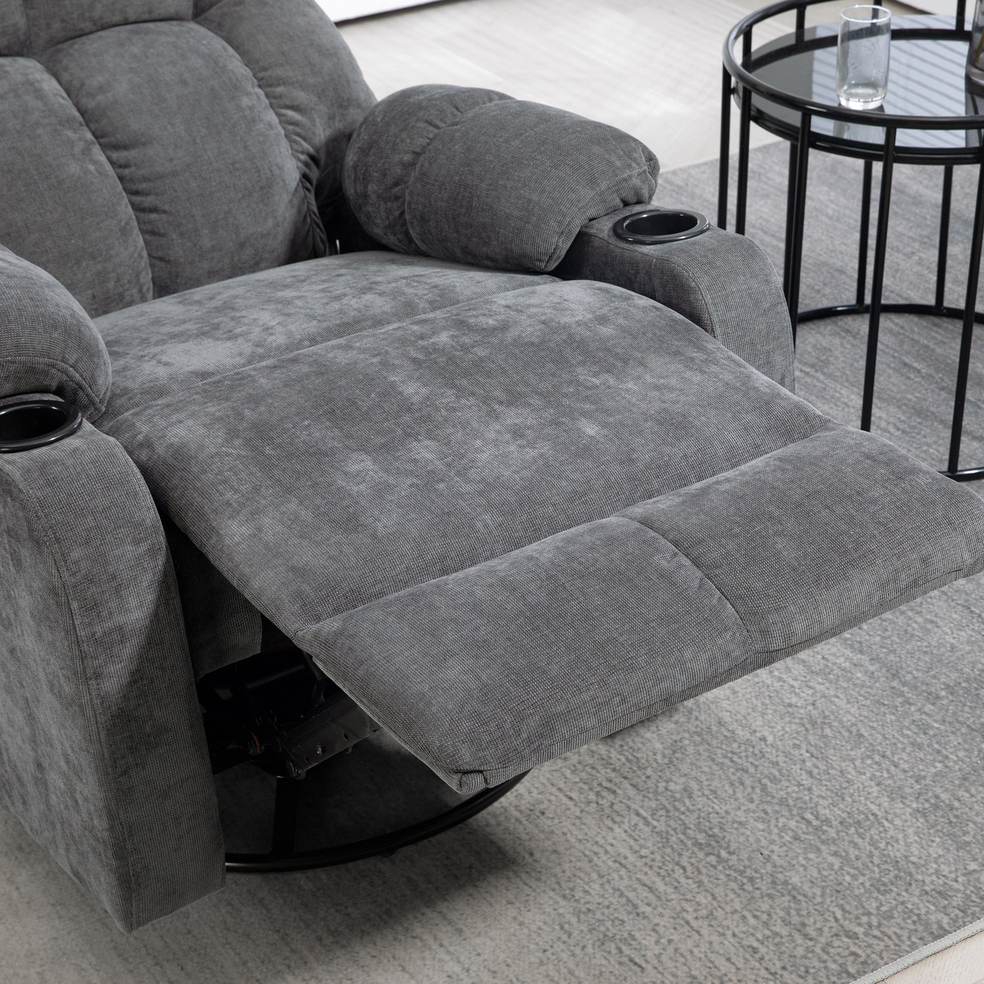 Lassen Sie sich in den HOMCOM Relaxsessel fallen, wo Komfort auf Funktionalität trifft. Mit einer auf bis zu 135° neigbaren Rückenlehne, die sich einfach per Schnalle an Ihren idealen Neigungswinkel anpassen lässt, und einer mit Fußdruck ausfahrbaren Fußstütze, lädt dieser TV Sessel zum stilvollen Entspannen ein. Genießen Sie höchste Bewegungsfreiheit dank der Drehfunktion und eine wunderbare Schaukelfunktion, welche die Alltagshektiv sanft ausklingen lässt.