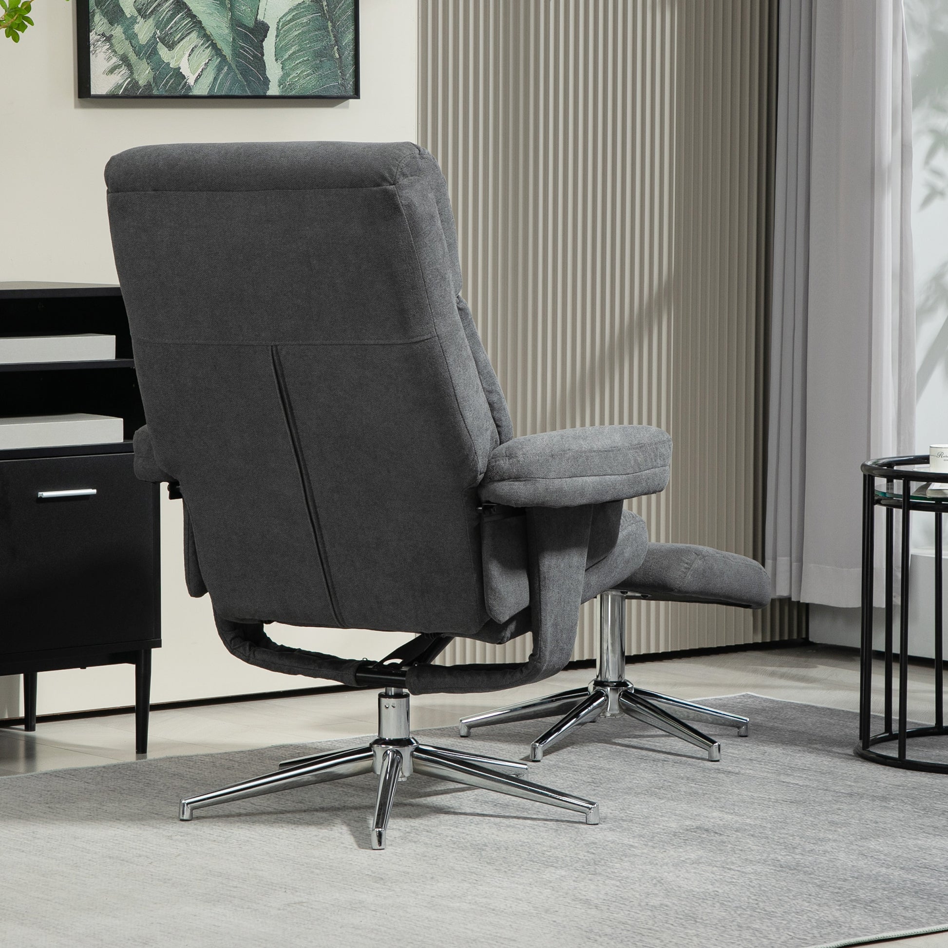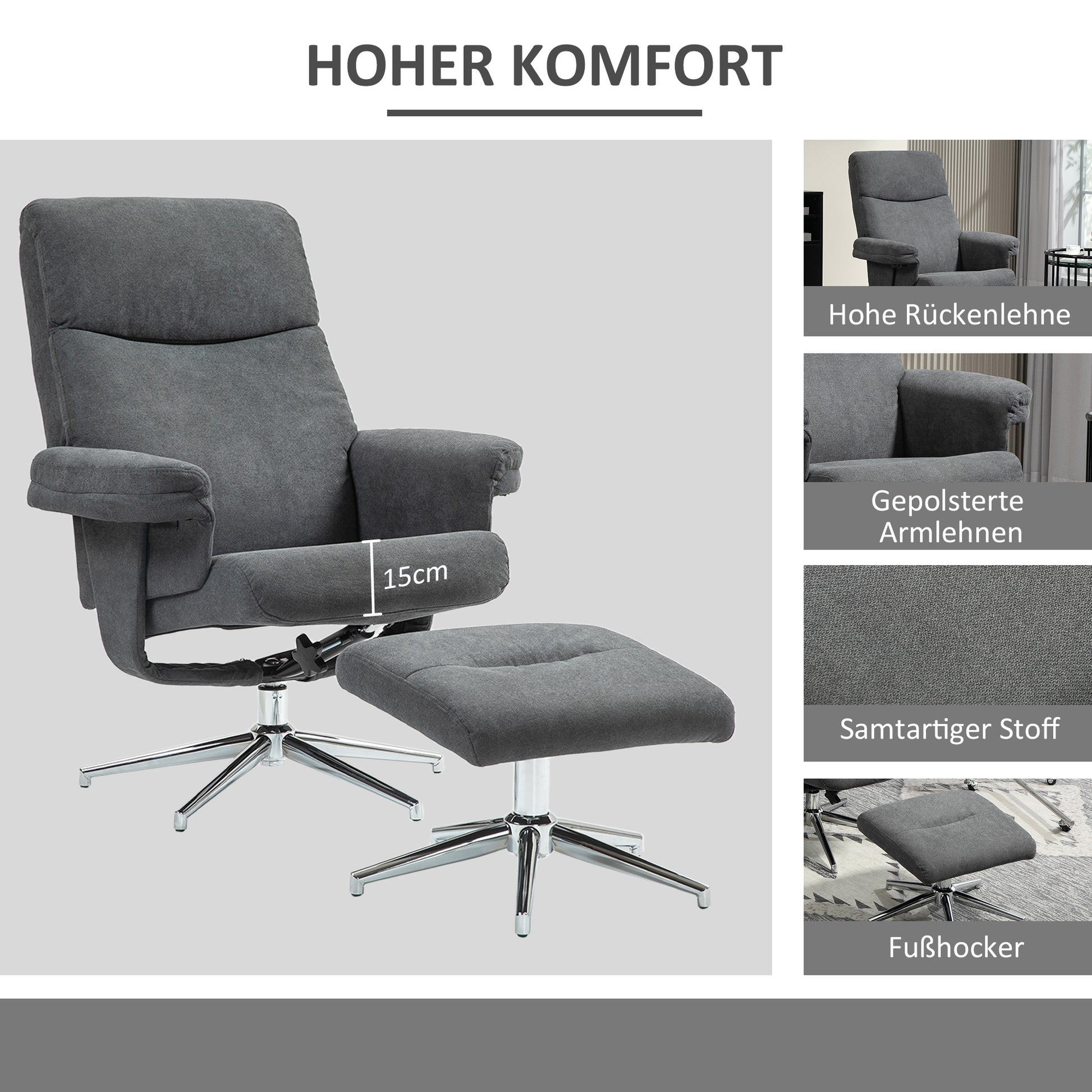 HOMCOM Relaxsessel mit Hocker, verstellbare Rückenlehne, Samtoptik, bis 150 kg, Anthrazit