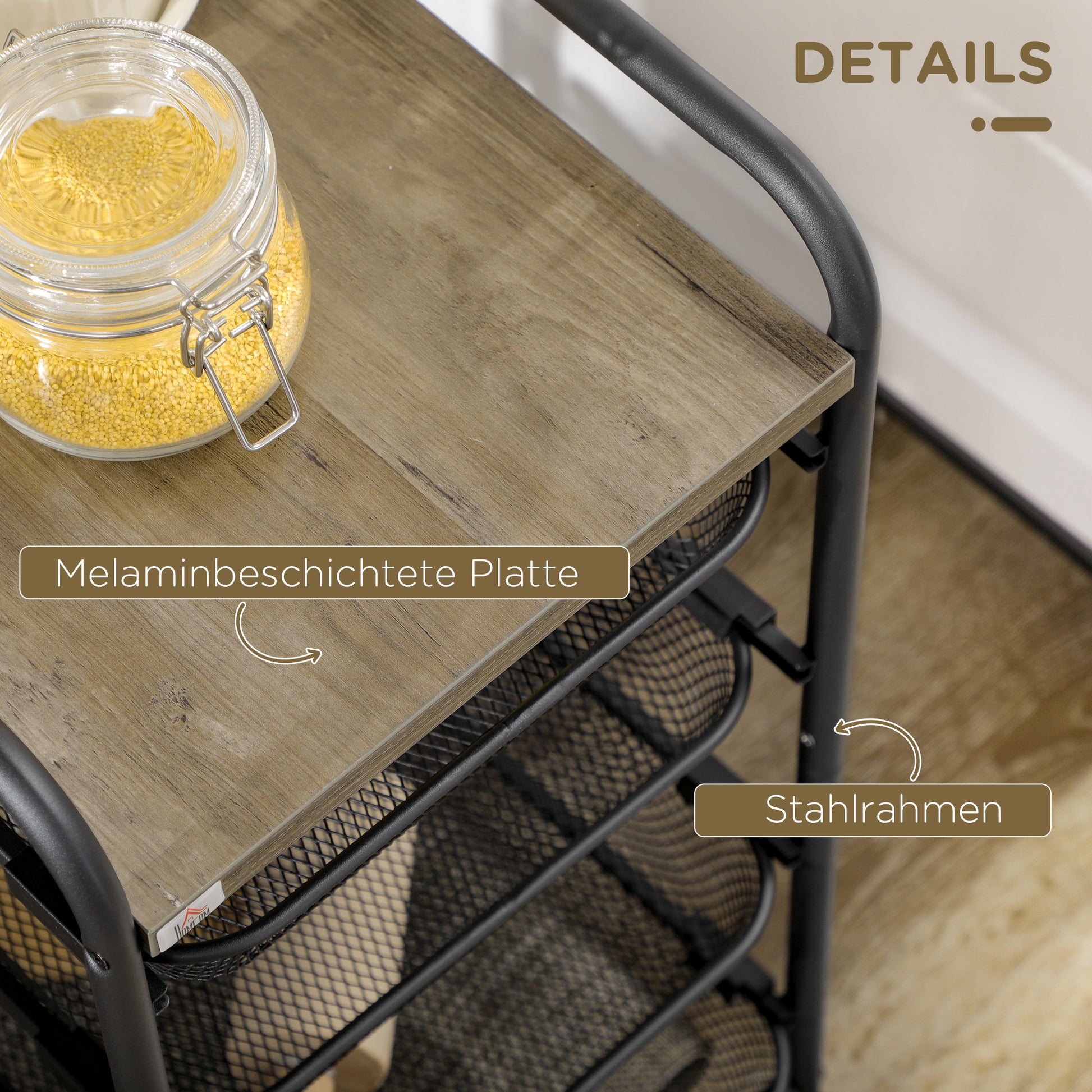 HOMCOM Rollwagen mit 4 Körben, Küchenwagen, 4 Räder mit 2 Bremsen, Allzweckwagen, Schwarz, 41,5 x 31 x 66 cm