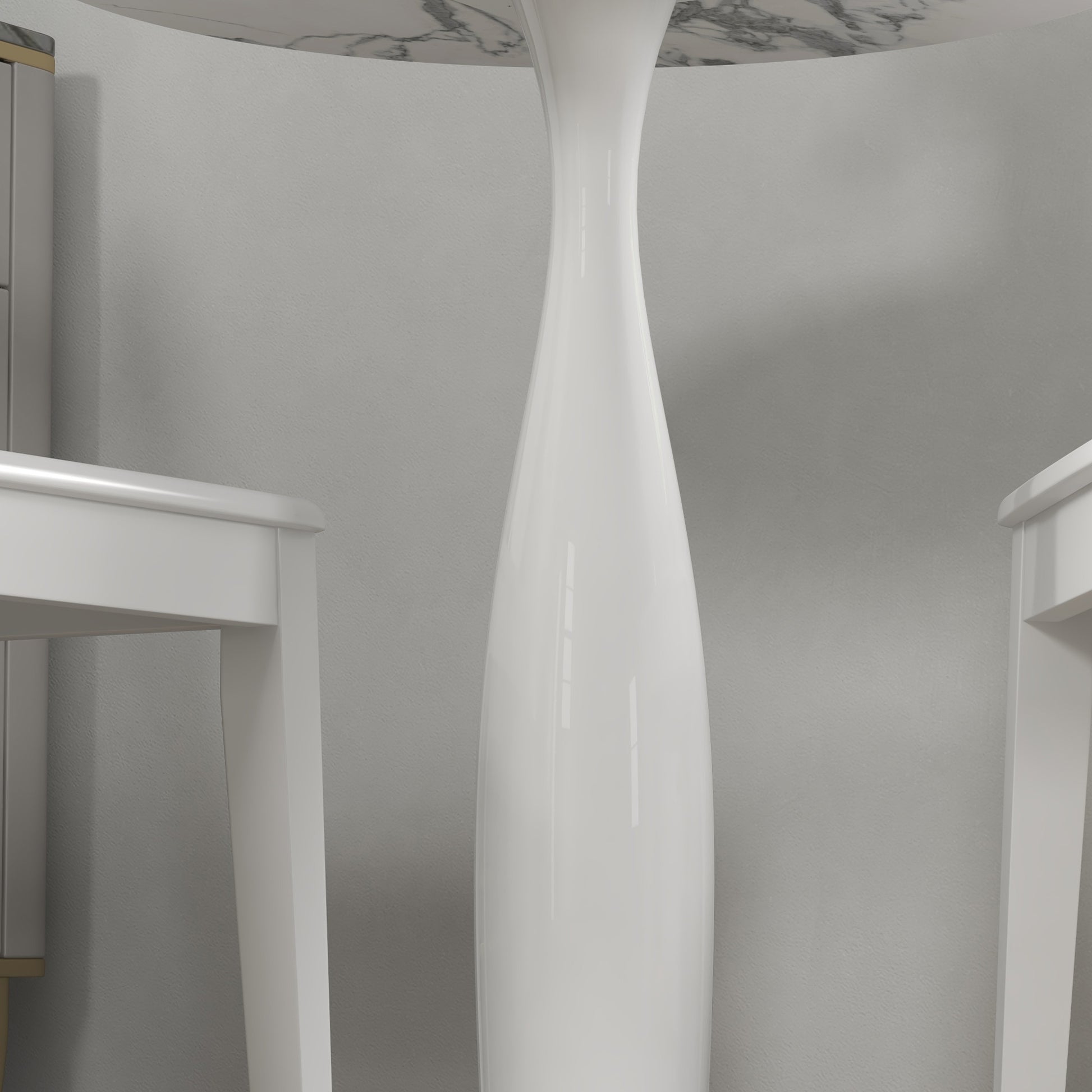 Genießen Sie entspannte und stilvolle Mahlzeiten mit dem HOMCOM Esszimmertisch. Seine elegante, runde Form und die kunstmarmorierte Oberfläche des Küchentisches verleihen ihm eine klassische Ausstrahlung. Der Rahmen des Küchentisches aus pulverbeschichtetem Stahl bietet eine solide Basis, ergänzt durch rutschfeste Fußpolster für zusätzliche Stabilität. Ideal für gesellige Stunden, egal wo.