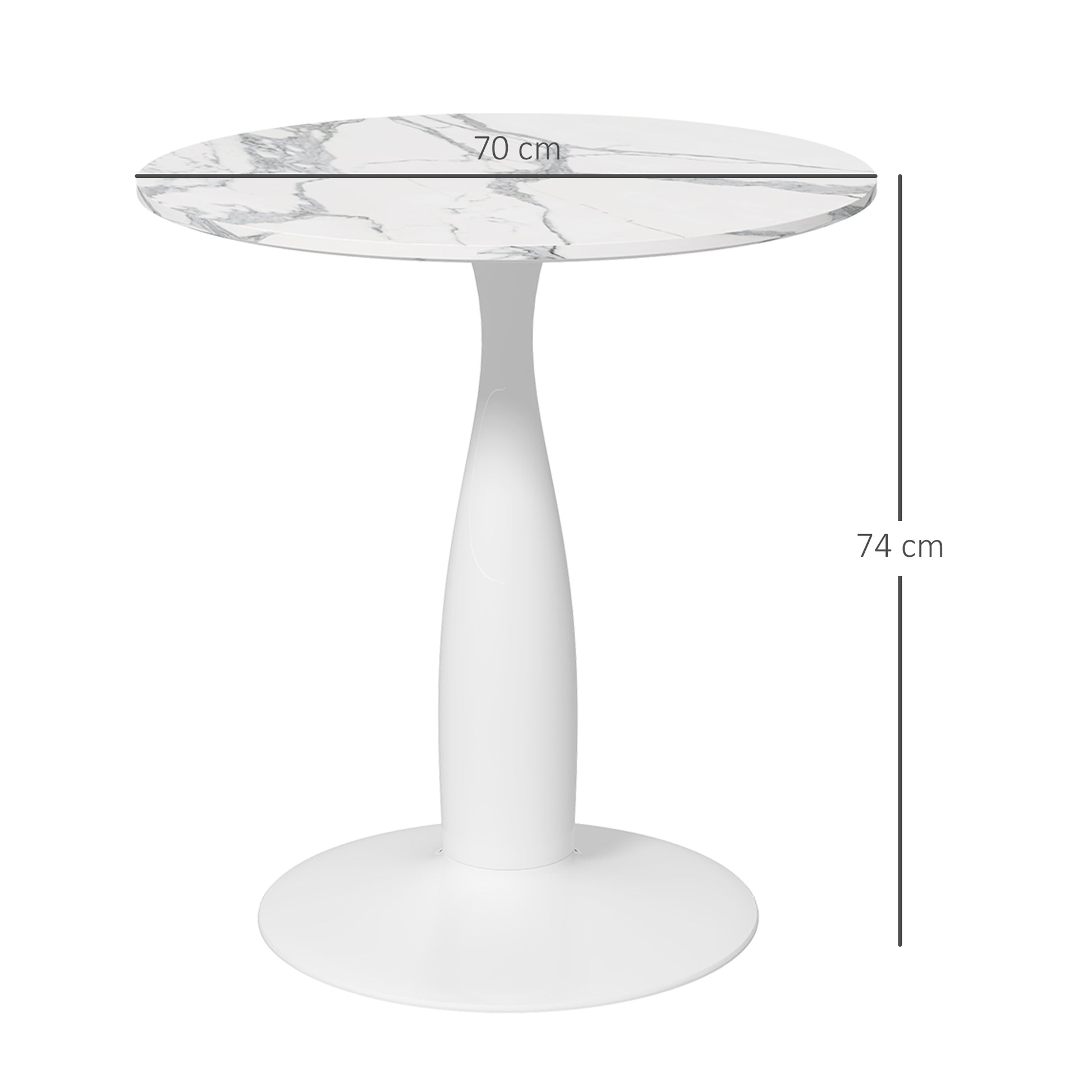 HOMCOM Runder Esstisch, pulverbeschichteter Stahl, MDF mit Melamin, rutschfeste Füße, 70 x 74 cm, Weiß