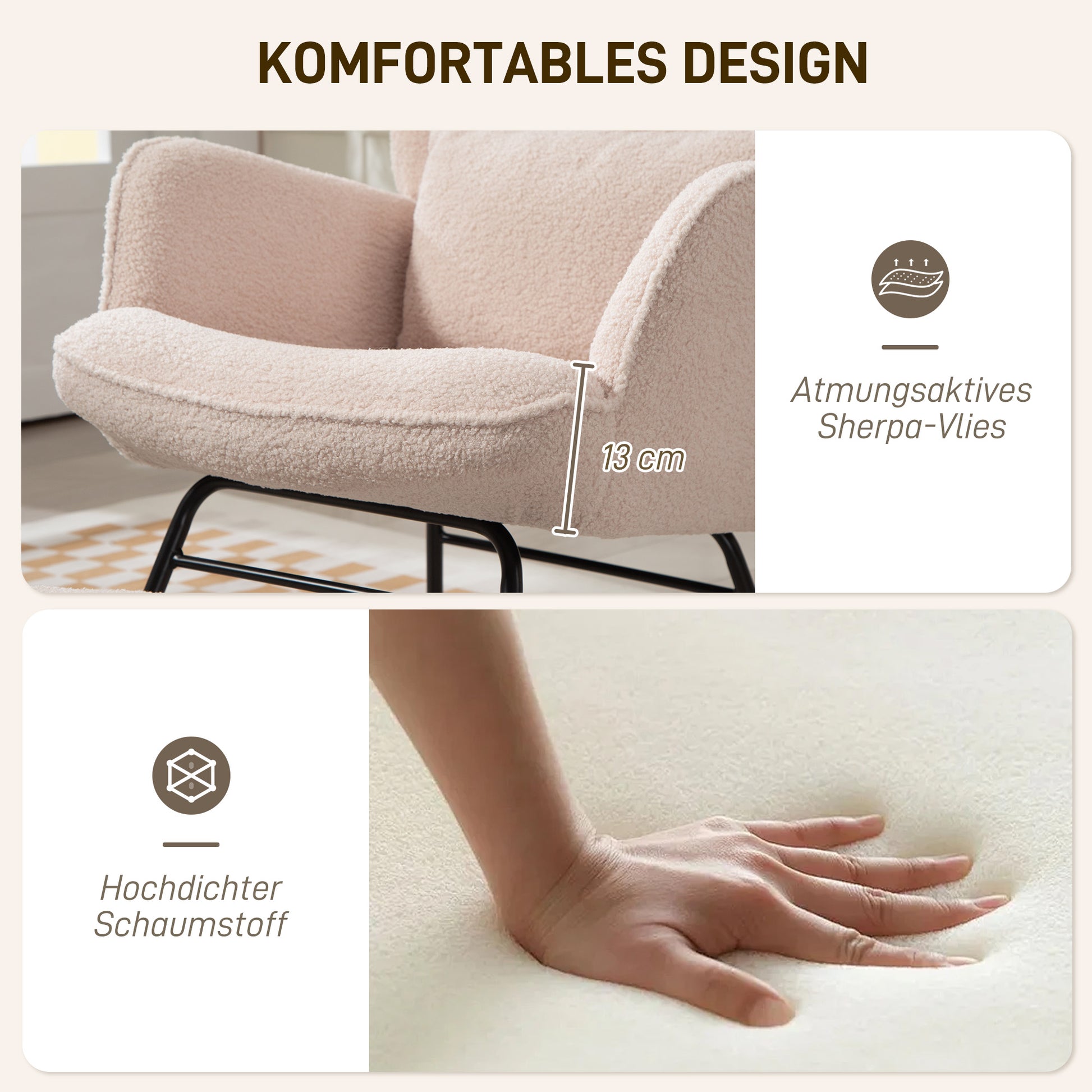 HOMCOM Schaukelstuhl mit Fußhocker, weicher Fleece-Bezug, Holzbeine, Kissen, hohe Rückenlehne, Schaukelsessel, Beige
