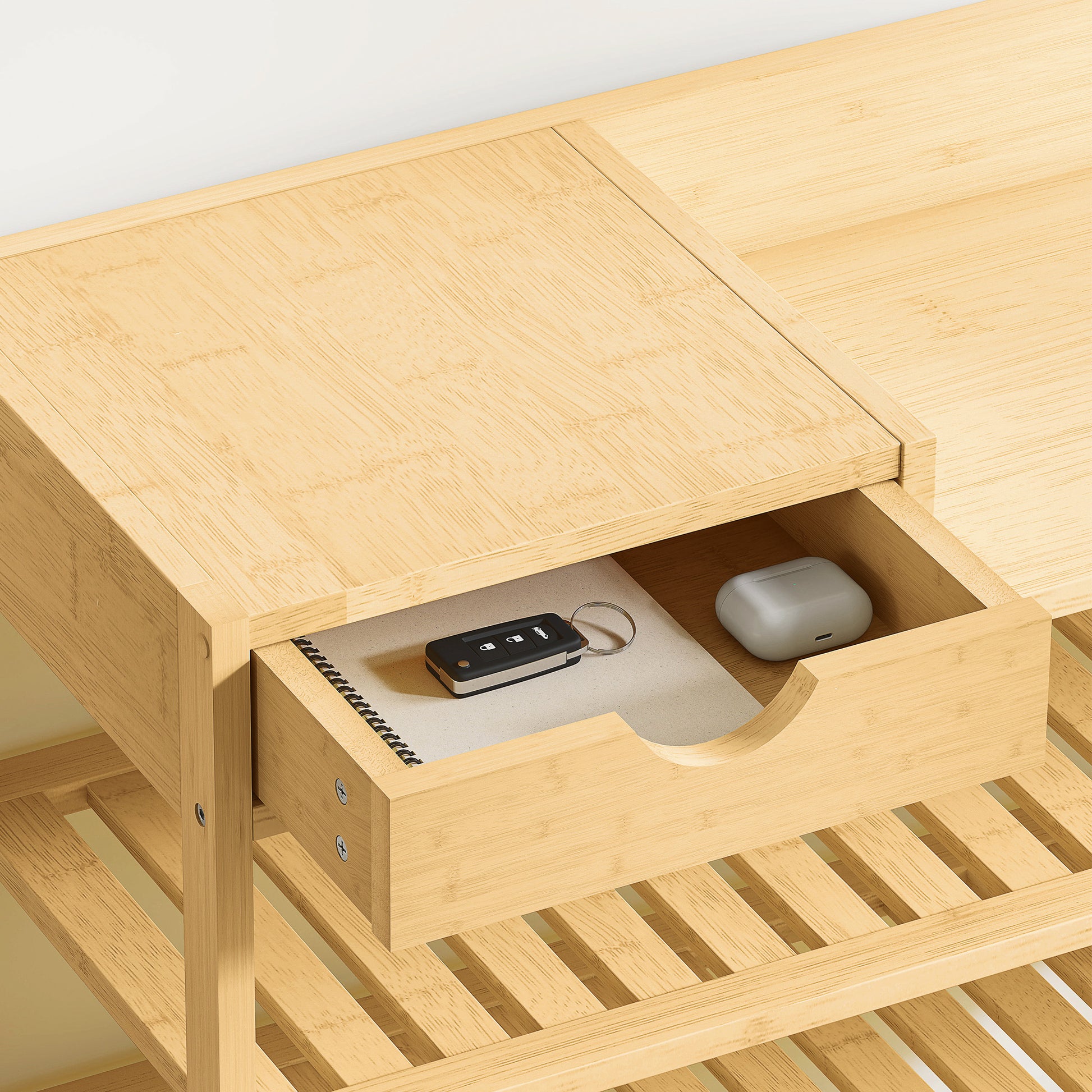 HOMCOM Schuhregal, Schuhständer mit 6 Ebenen, Schublade aus Bambus, für max. 18 Paar Schuhe, Schuhablage für Eingang, Schlafzimmer, 101 x 30 x 100 cm, Natur