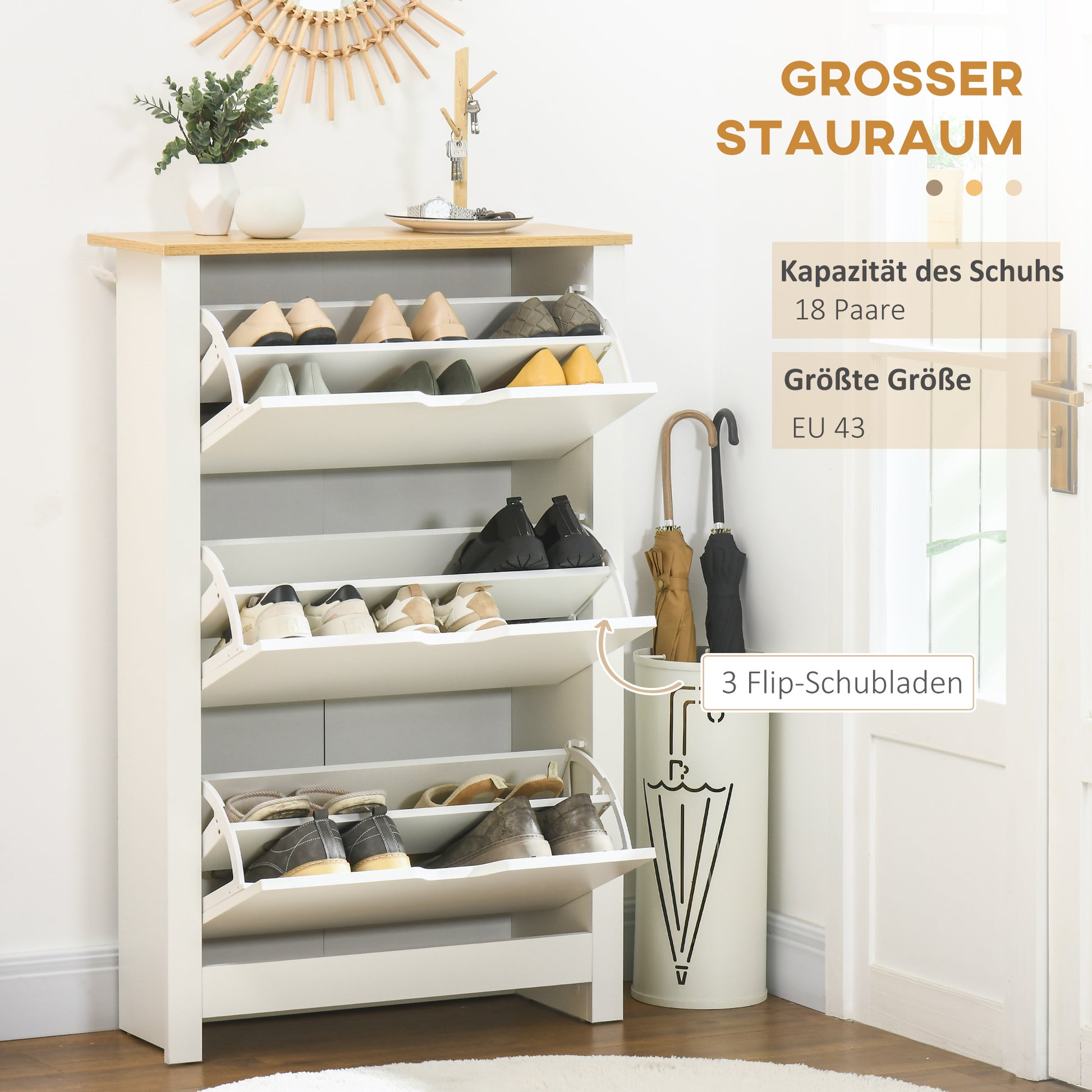 HOMCOM Schuhschrank Schruhregal Schuhaufbewahrung, 3 Fächer, 18 Paar Schuhe, 72 cm x 26 cm x 112 cm, Weiß + Braun