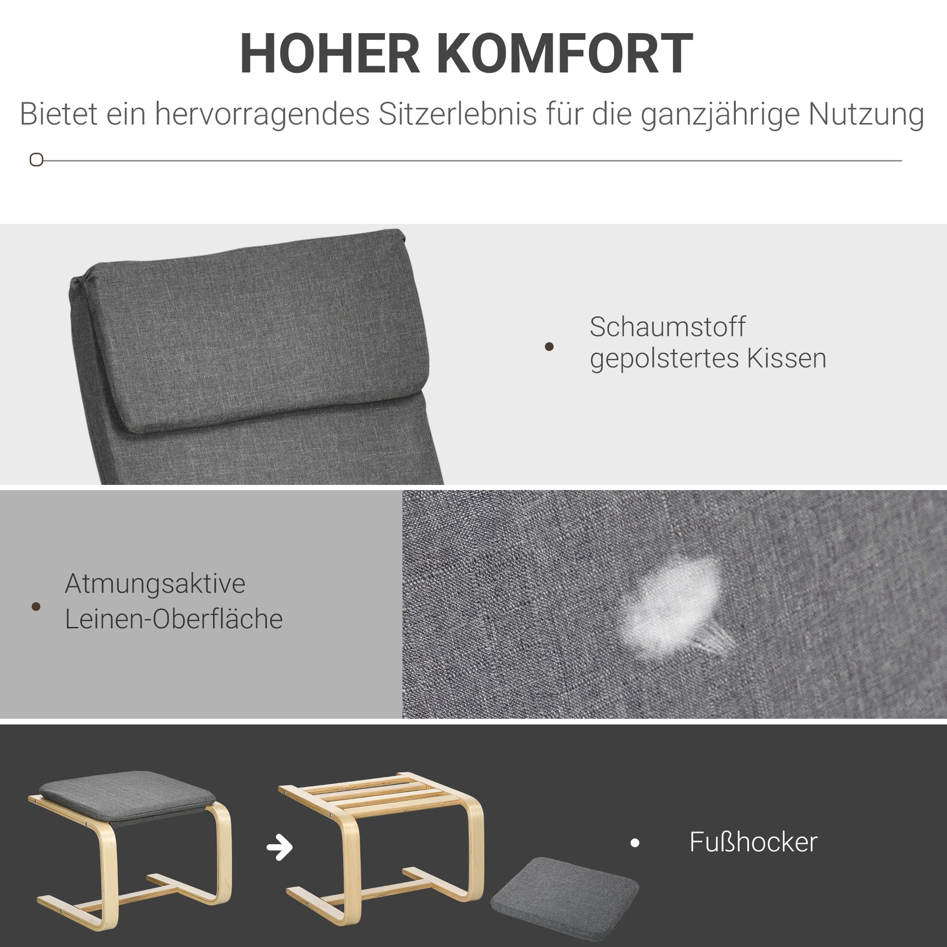 HOMCOM Sessel mit Fußhocker, Sessel-Set, bis 120 kg, Leinenoptik, Massivholz, Grau + Natur, 66,5 x 80 x 99 cm