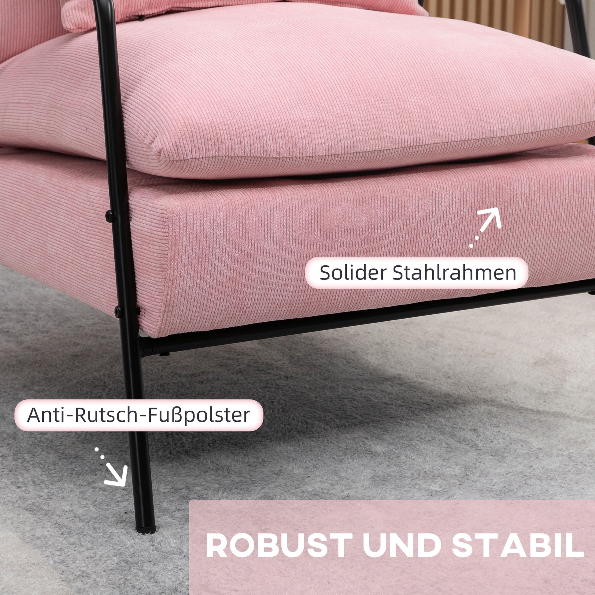 HOMCOM Sessel mit Ottomane, inkl. Kissen, 68 cm x 91,5 cm x 88 cm, Rosa