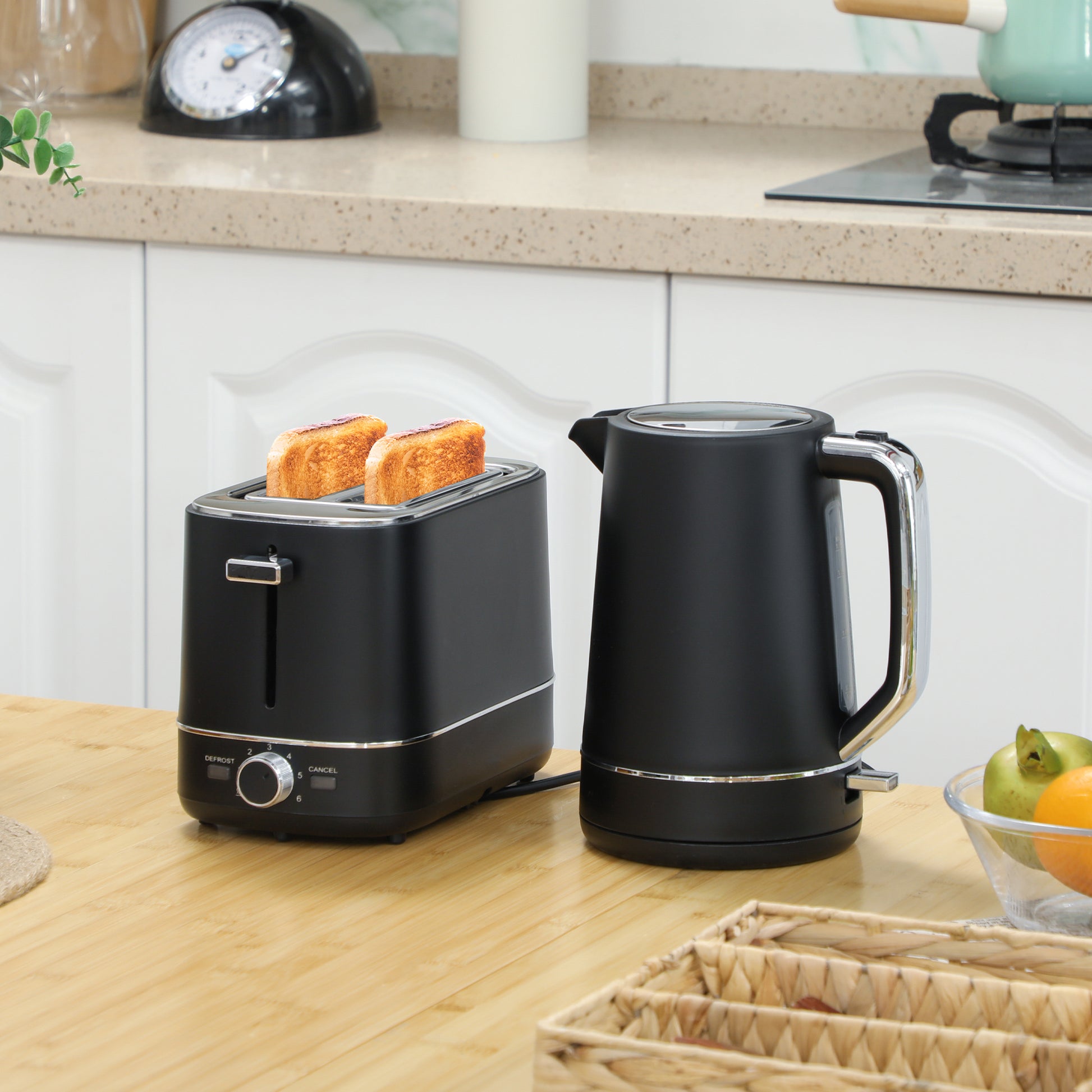 HOMCOM Set aus 1,7 L Wasserkocher und Toaster mit 6 Bräunungsstufen, Schwarz/Stahl
