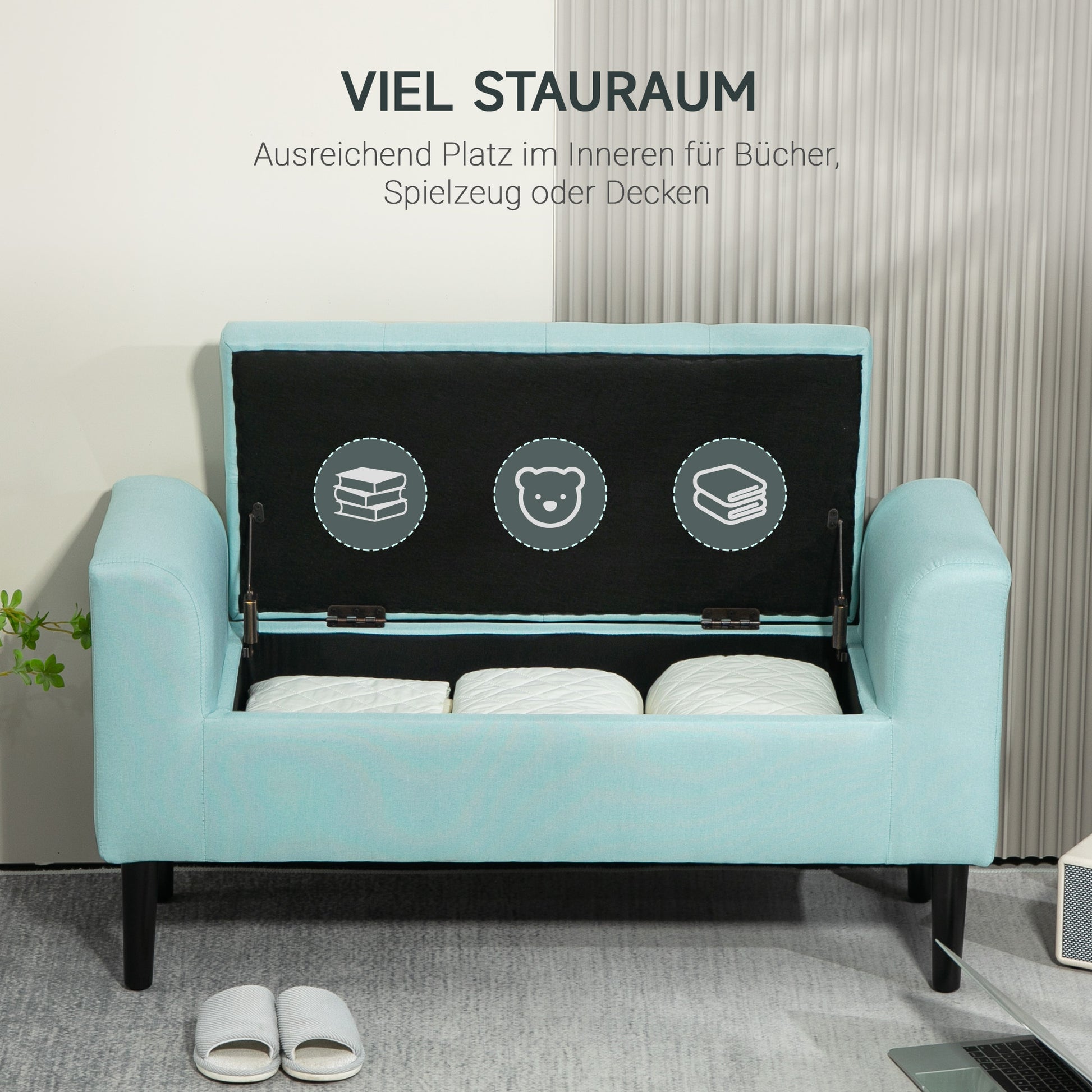 HOMCOM Sitzbank mit Stauraum, Polsterbank, belastbar bis 130 kg, Leinenoptik, Kautschukholz, 116 x 44 x 58 cm, Grün