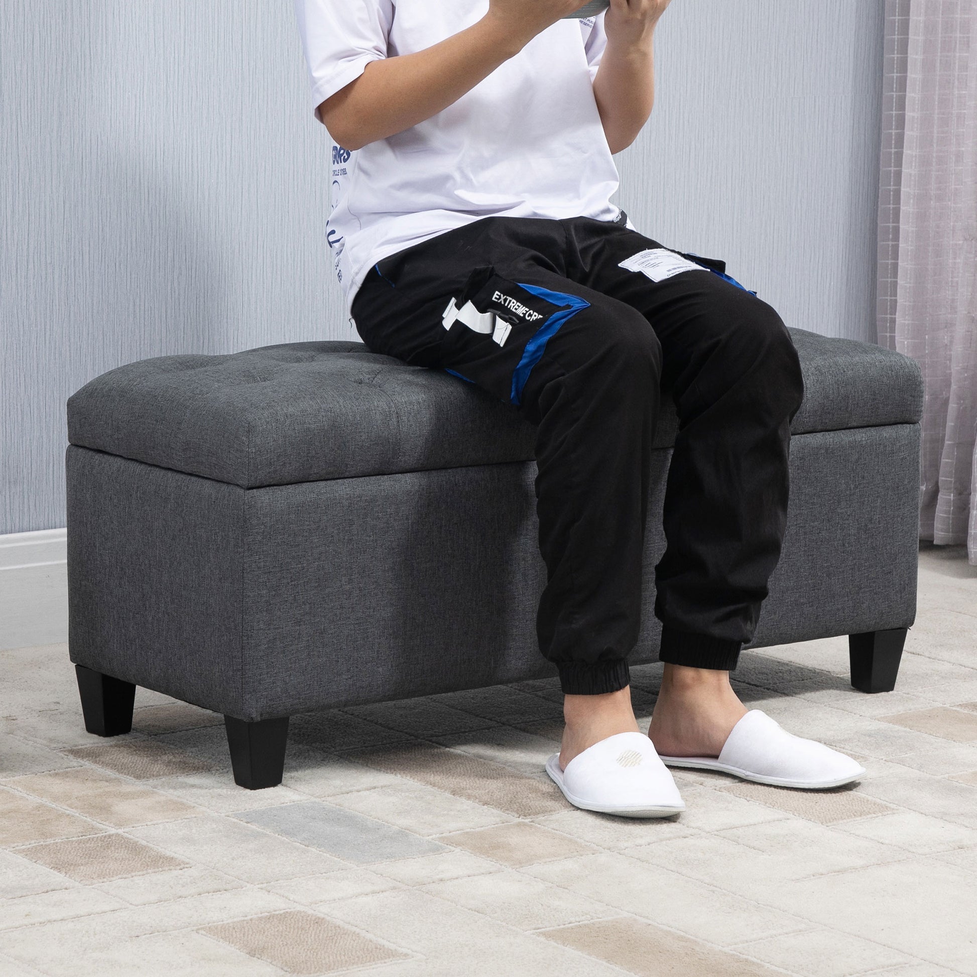 HOMCOM Sitzbank mit Stauraum Polsterbank mit Leinenoptik, Sitztruhe mit Holzbeine, Truhenbank für Wohnzimmer Schlafzimmer Flur 100 x 40 x 44 cm Dunkelgrau