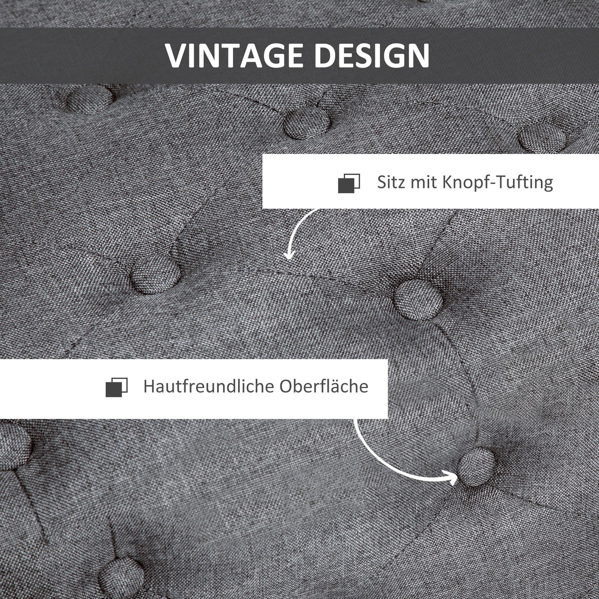 Mit dieser Sitzbank von HOMCOM wird auch eine einfache Sitzgelegenheit zum Blickfang. Die ansprechenden, mit Knöpfen versehenen Details und der atmungsaktive Stoff von der Bettbank verleihen Ihrem Zuhause einen Hauch von Vintage-Glamour. Mit reichlich Stauraum im Inneren ist diese Sitzbank eine elegante und zugleich praktische Wahl für eine zusätzliche Sitzgelegenheit im Eingangsbereich, im Wohnzimmer oder im Schlafzimmer.