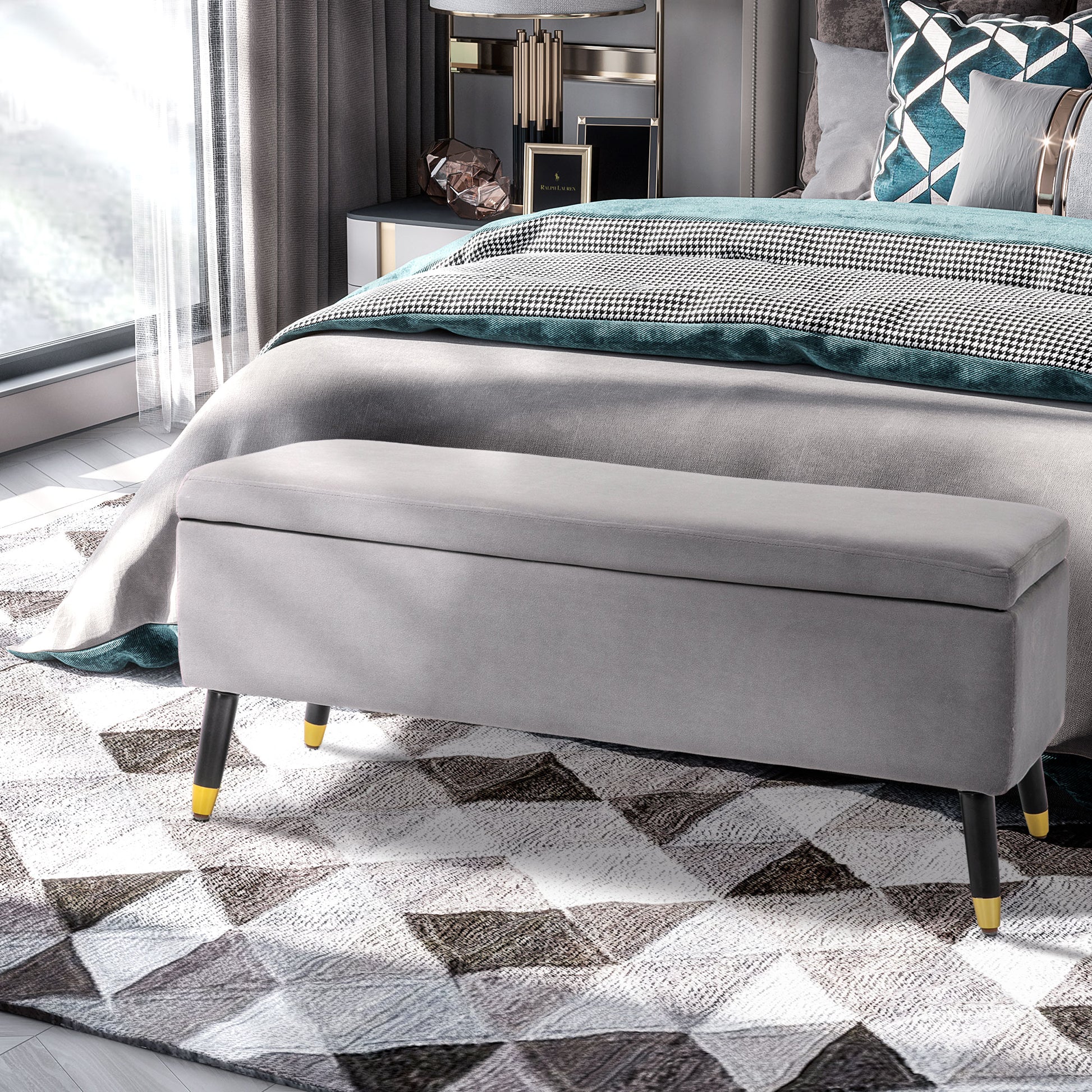 HOMCOM Sitzbank, Polsterbank mit Stauraum, Truhenbank, Metall, Schaumstoff, Kautschukholz, Kohlegrau, 110 x 43 x 45 cm