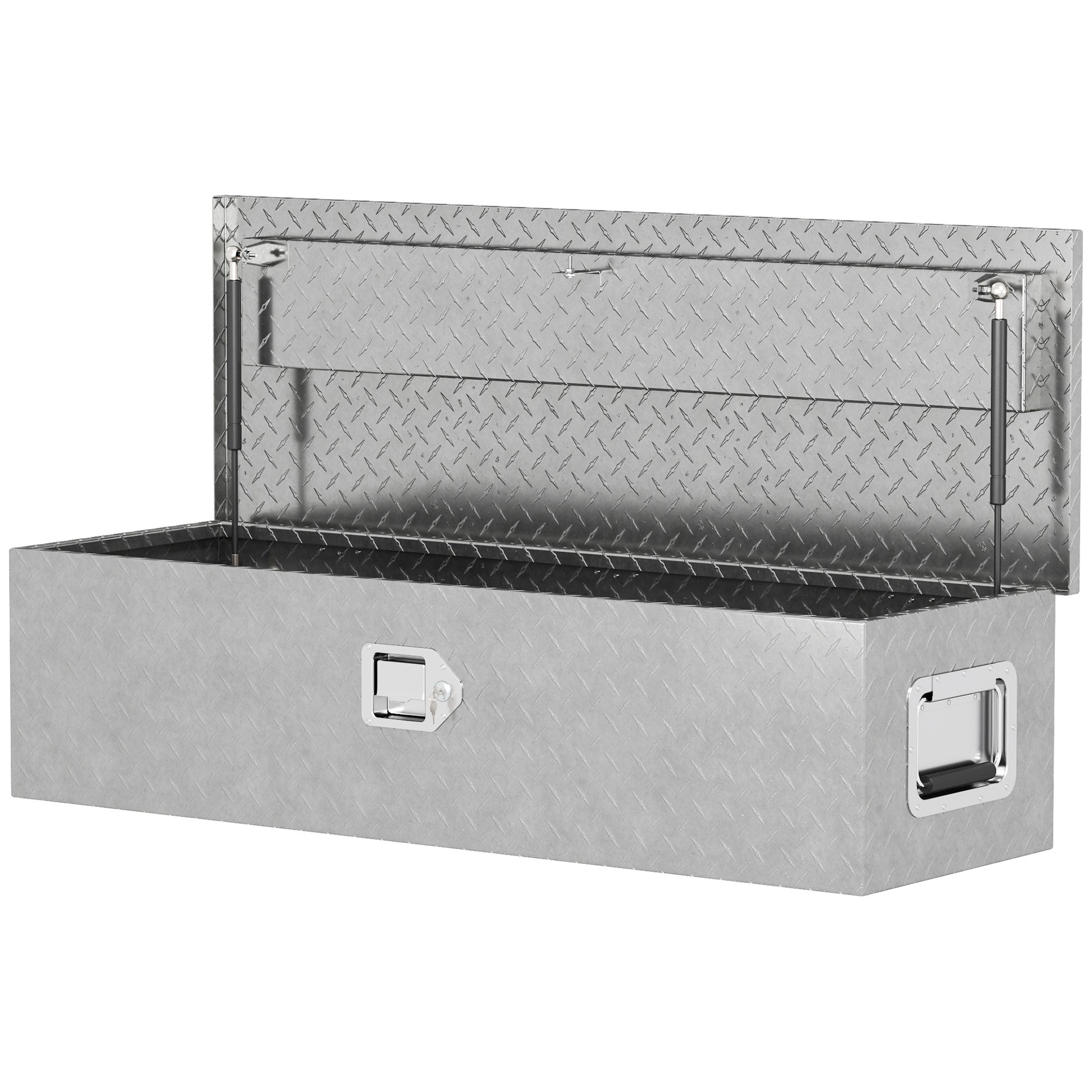 HOMCOM Stabile Aufbewahrungskiste aus Aluminium mit Seitengriffen, Schloss und Schlüsseln, Werkzeugkasten, 99 x 33 x 25,5 cm