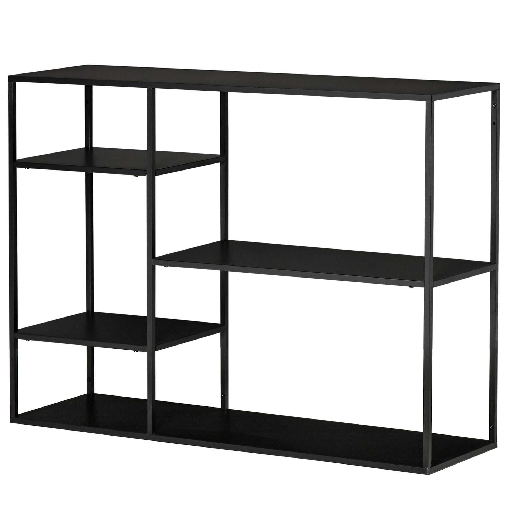 HOMCOM Standregal Bücherregal mit 5 offenen Fächern, Aufbewahrungsregal mit Metallrahmen, Würfelregal für Küche, Wohnzimmer, Schwarz, 120 x 35 x 87,5 cm