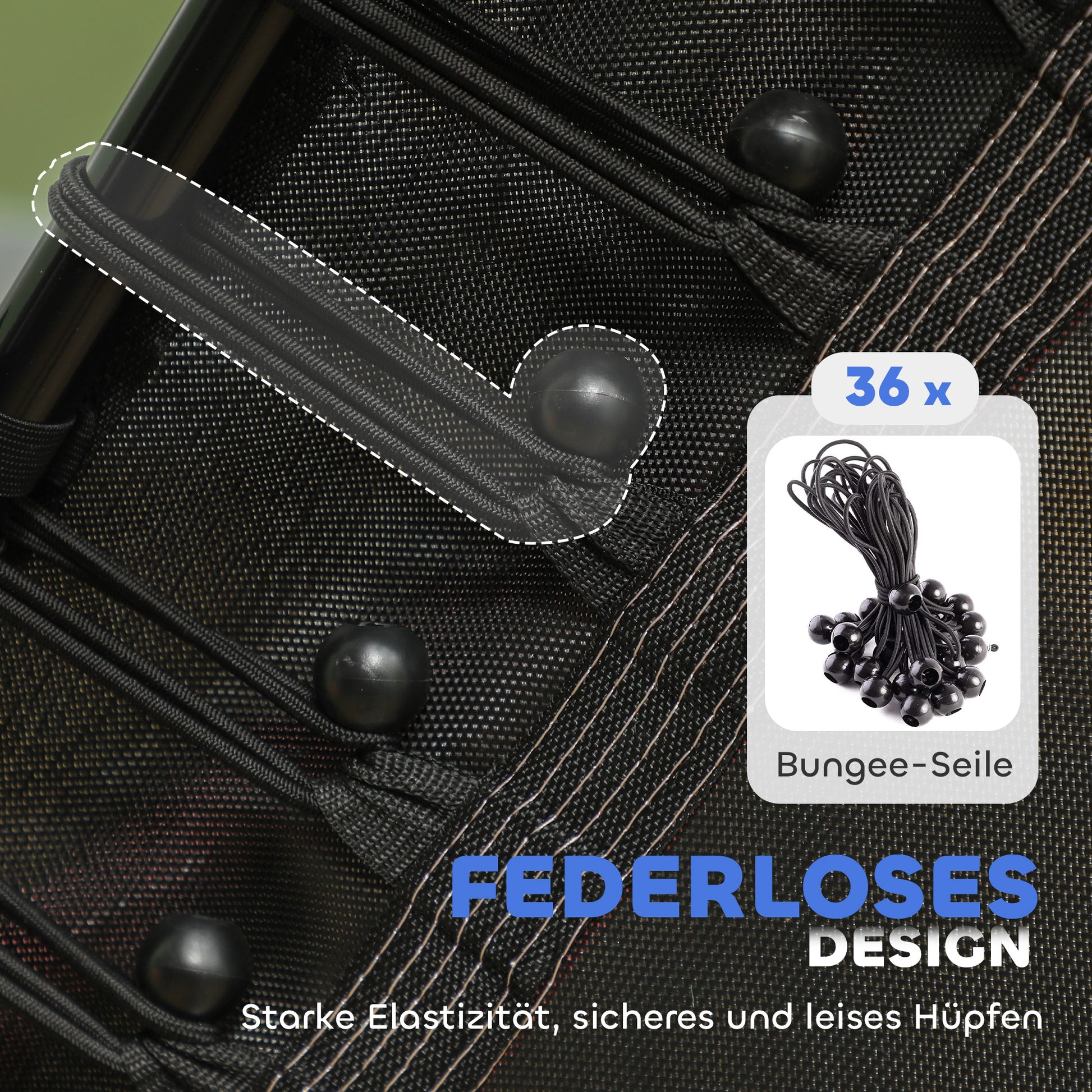 - ✔ Sprungmatte des Kindertrampolins mit 6 elastischen Seilen am Rahmen befestigt