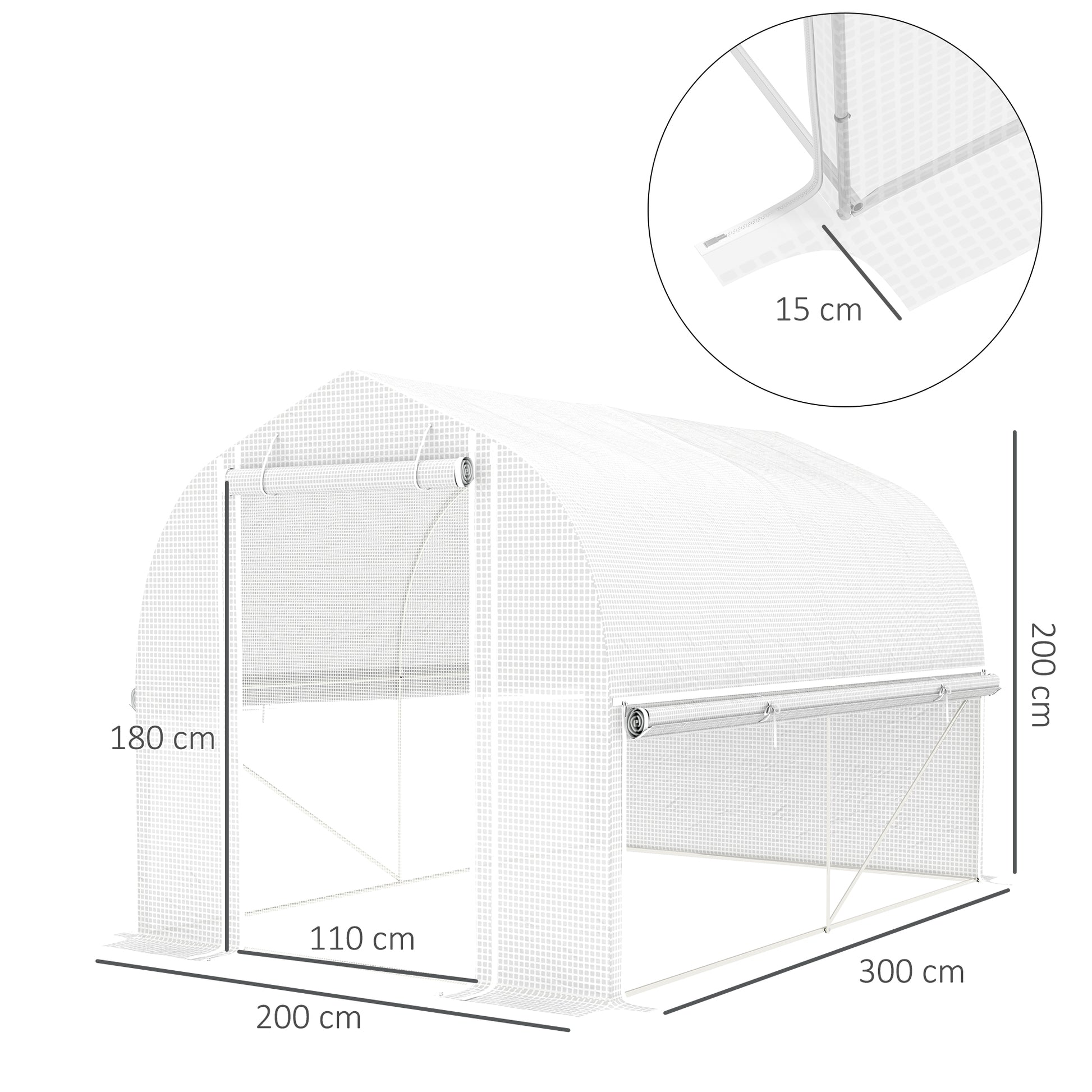 Outsunny 3 x 2 x 2 m Polytunnel-Gewächshaus mit aufrollbaren Seitenwänden, UV-beständiger Kunststoff-Plane und Stahlrahmen, Weiß