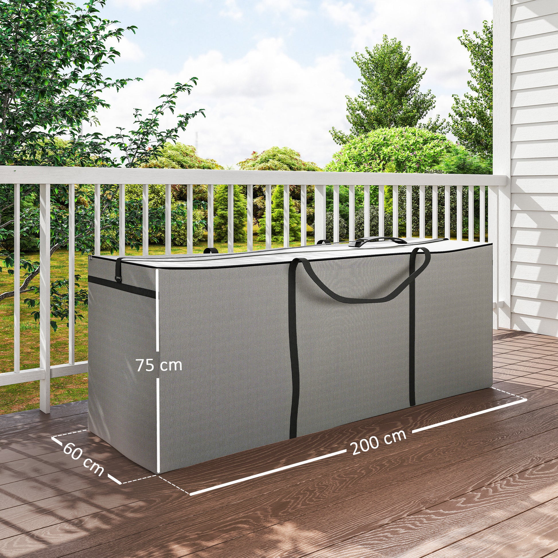 Outsunny Aufbewahrungstasche Gartenpolster, Auflagentasche, Schutzhülle mit Tragegriff, Reißverschluss, 200 x 60 x 75 cm, Hellgrau