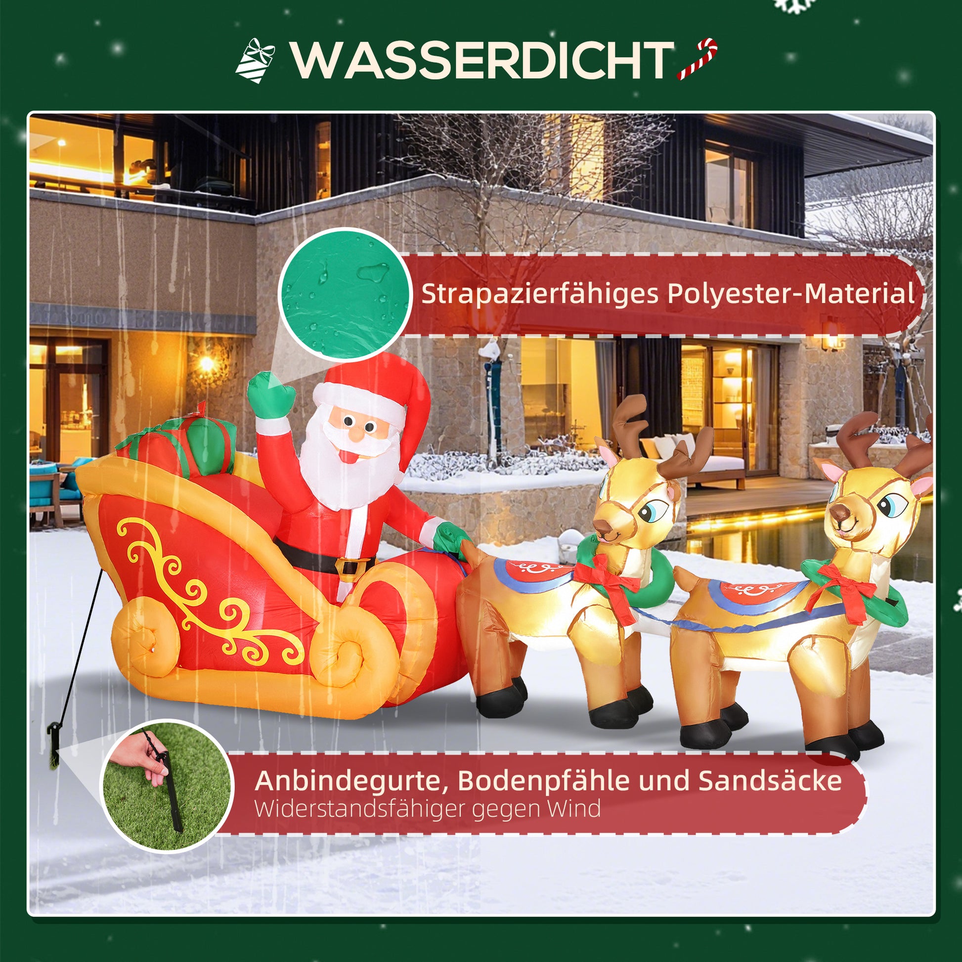 Outsunny Aufblasbare Weihnachtsdekoration, Weihnachtsmann im Rentierschlitten, Polyester