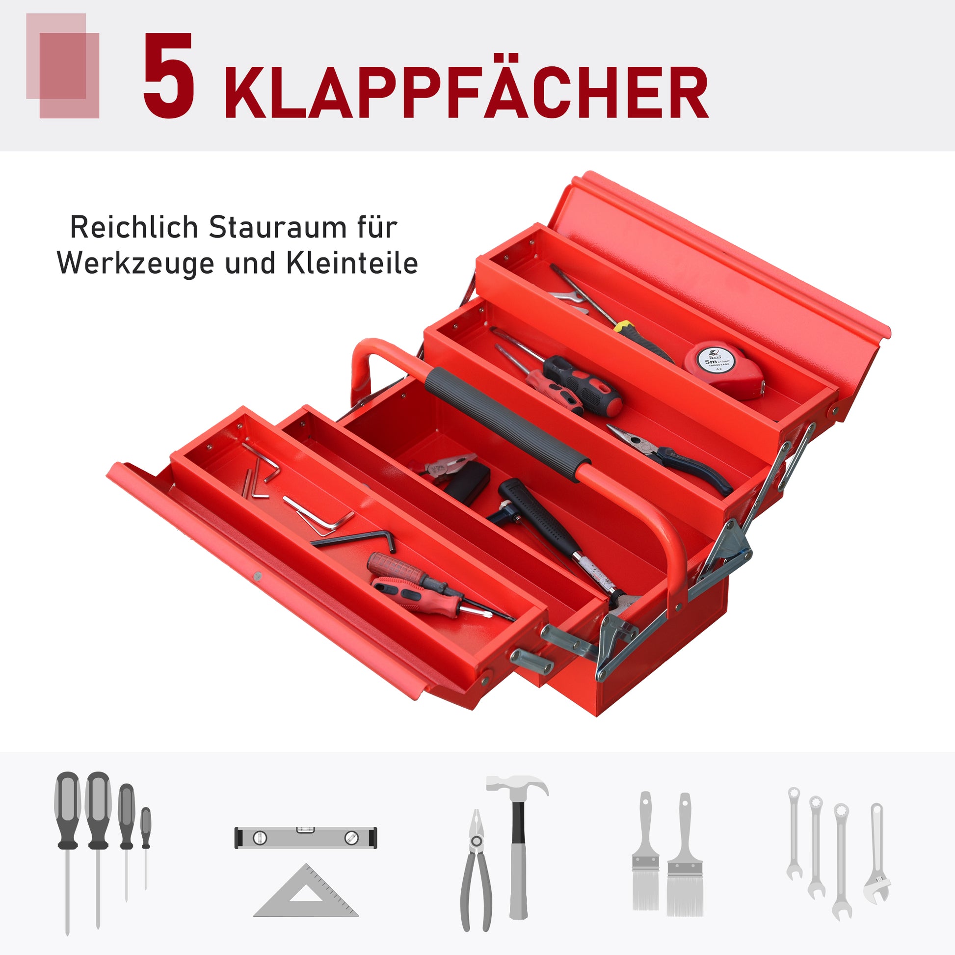 DURHAND Werkzeugkasten Werkzeugkoffer mit 5 Fächern 45 x 20 x 34,5cm Stahl Rot