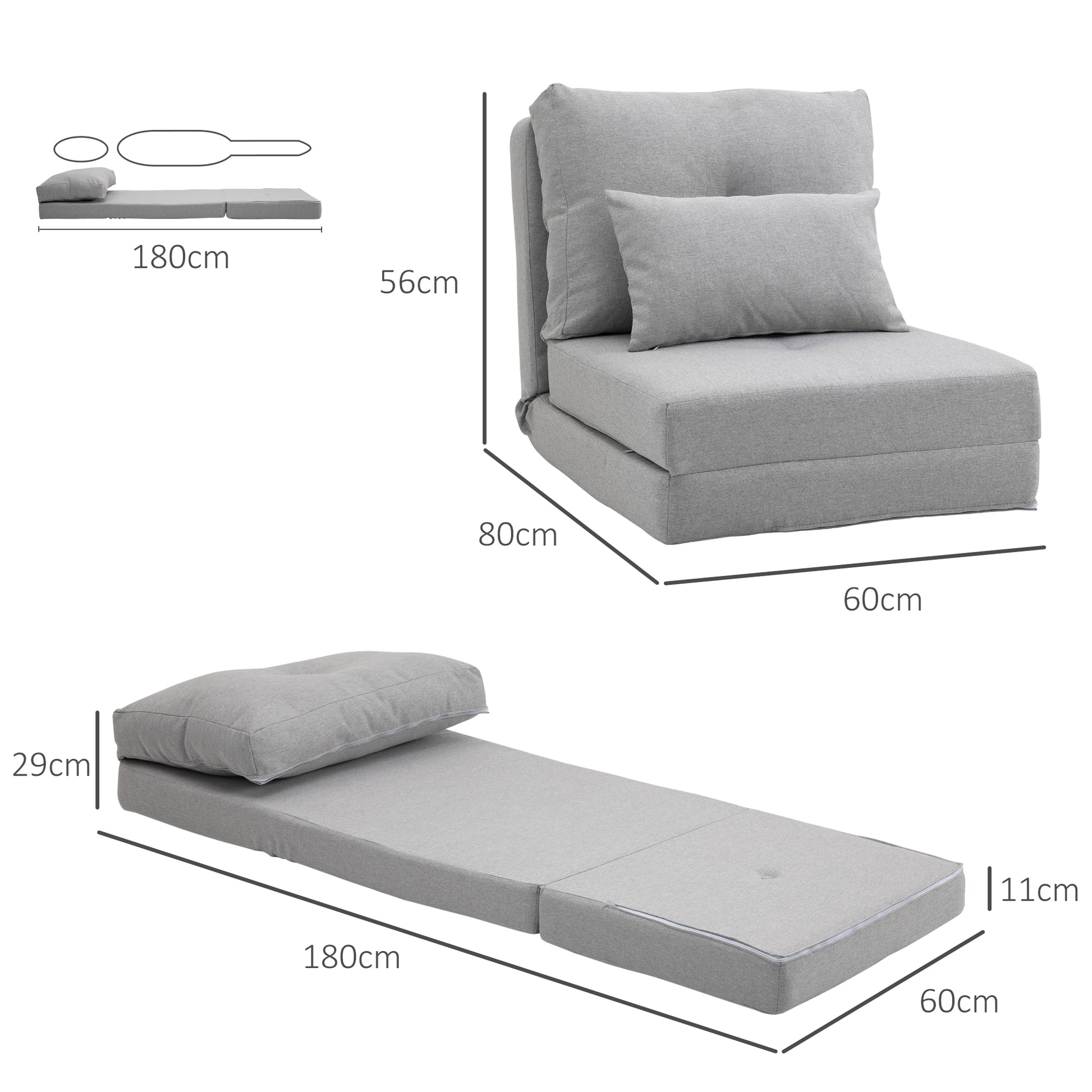 HOMCOM Bodensessel Klappmatratze Schlafmatte, 2-in-1-Design, abnehmbares Kissen, 60 x 80 x 56 cm, Grau
