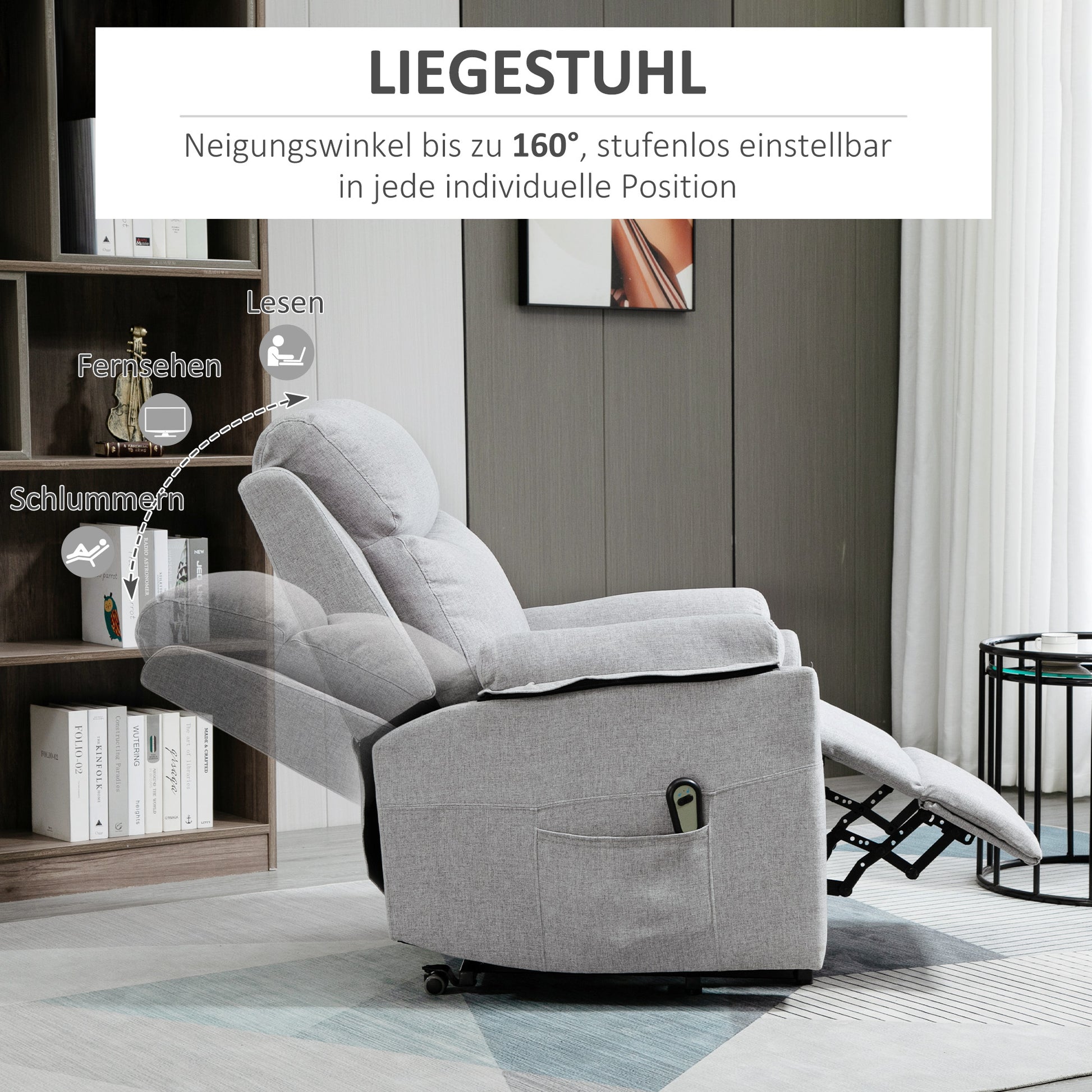 HOMCOM Relaxsessel mit Aufstehhilfe, elektrisch, Liegefunktion, Fernbedienung, Taschenfederkern, bis 120 kg, Grau